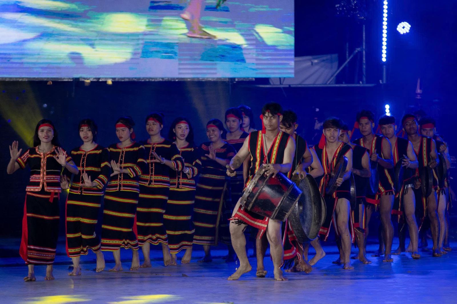 Tiếp theo là tiết mục biểu diễn cồng chiêng với sự tham gia của các đội chiêng Đam Rông 2, Đam Rông 4, xã Đinh Trang Thượng và phường Lang Biang - Đà Lạt (Lâm Đồng). Từ vùng đất cao nguyên - nơi núi rừng còn giữ nguyên nhịp thở nguyên sơ, tiết mục trình diễn mang theo âm sắc mộc mạc, trầm hùng, phản chiếu đời sống gắn bó giữa con người với thiên nhiên, phản ánh những trầm tích ký ức được gìn giữ qua bao thế hệ. Tiếng chiêng nơi đây còn mang đến âm thanh của cộng đồng, của lễ hội, của sự gắn kết buôn làng. Là vùng đất nơi cồng chiêng gắn liền với nghi lễ, mùa màng vòng đời của con người, các đội chiêng nơi đây gìn giữ những bài chiêng cổ, thường dùng trong lễ mừng lúa mới, lễ cúng Yang, lễ sum họp buôn làng, mang theo sự trang nghiêm, linh thiêng và niềm tin bền chặt vào đất trời. Đội trống Chăm của tỉnh Lâm Đồng lại mang đến nhịp điệu mạnh mẽ, dồn dập và đầy sức sống. Tiếng trống gắn liền với nghi lễ, tín ngưỡng và đời sống tinh thần của cộng đồng Chăm.