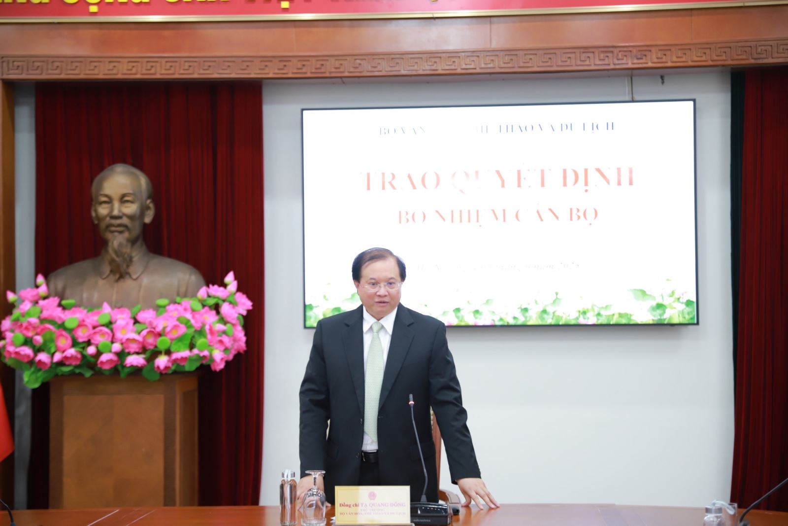 Phát biểu tại buổi Lễ, Thứ trưởng Bộ VHTTDL Tạ Quang Đông chúc mừng các cán bộ được công nhận và bổ nhiệm những chức vụ quan trọng.