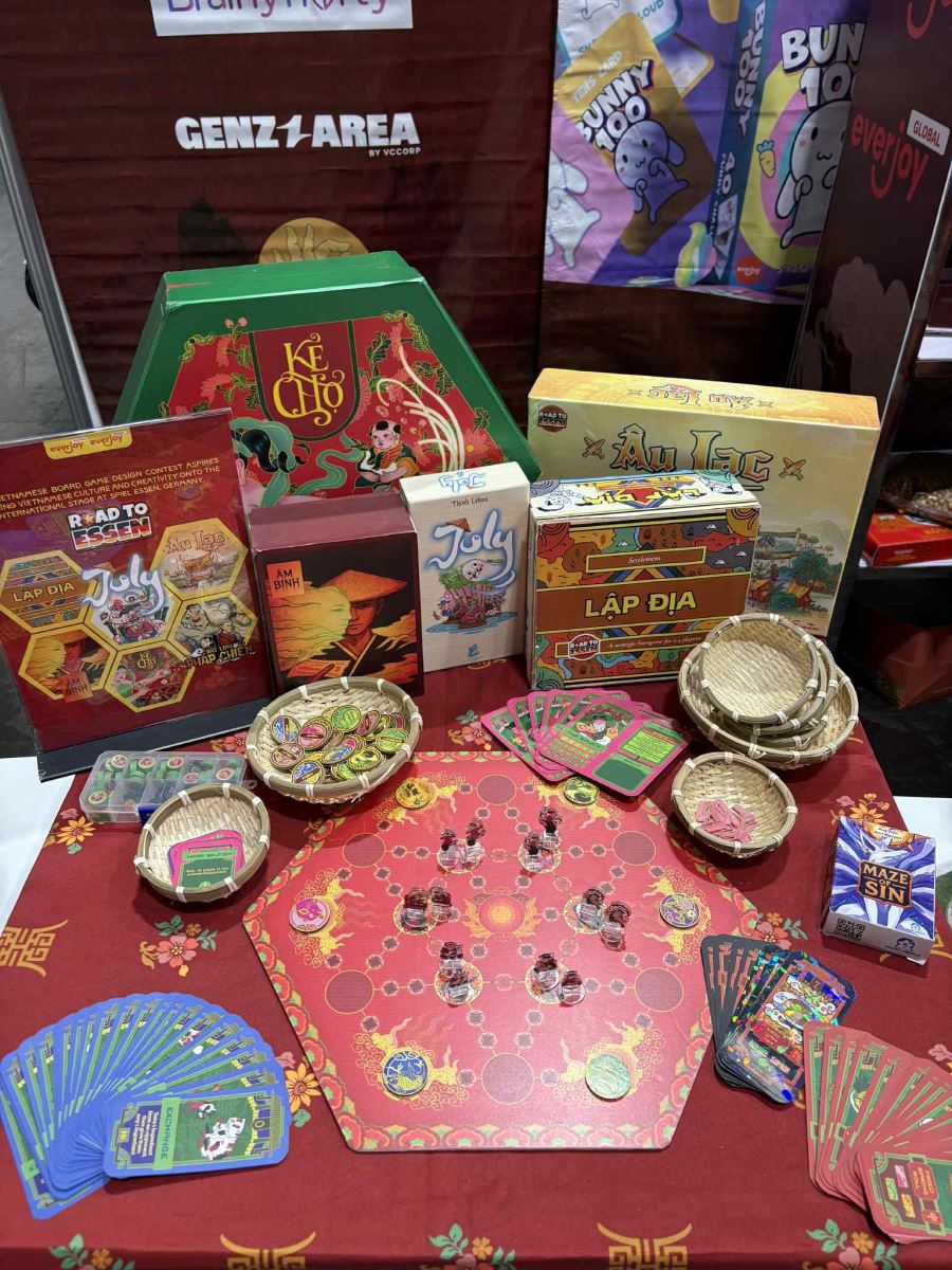 Đáng chú ý, Road to Essen 2025 là sáng kiến tìm kiếm và nuôi dưỡng nhà thiết kế board game trẻ, hướng tới đưa tác phẩm Việt đến SPIEL Essen – hội chợ board game lớn nhất thế giới tại Đức. Ngay năm đầu tổ chức, cuộc thi thu hút 156 bài dự thi, với 136 prototype hợp lệ, chủ đề trải rộng từ dân gian, lịch sử đến đời sống đương đại. Top 5 chung cuộc cho thấy cách tiếp cận văn hóa có chiều sâu, từ lịch sử dựng nước (Âu Lạc) đến giao thương đô thị cổ (Kẻ chợ) và thẩm mỹ nông thôn (Nét quê).