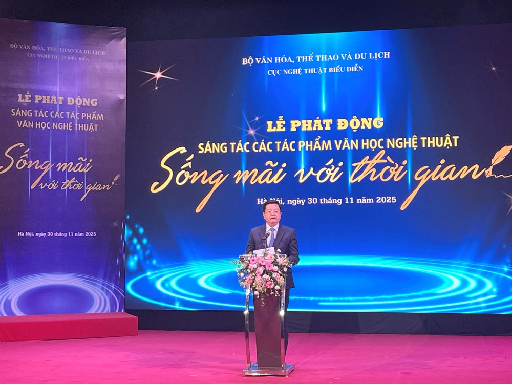 Sáng ngày 30-11, tại Hà Nội, Cục Nghệ thuật Biểu diễn (Bộ VHTTDL) long trọng tổ chức Công bố bình chọn “50 tác phẩm văn học, nghệ thuật biểu diễn Việt Nam tiêu biểu, xuất sắc sau ngày đất nước thống nhất (1975-2025)” và Phát động sáng tác các tác phẩm văn học nghệ thuật “Sống mãi với thời gian” giai đoạn 2026–2030. Ủy viên Trung ương Đảng, Phó Thủ tướng Chính phủ Mai Văn Chính tham dự và phát biểu chỉ đạo tại buổi lễ.