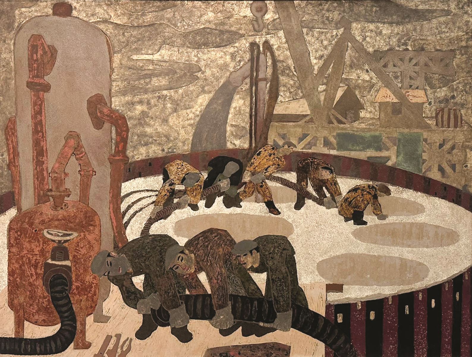 Lò An Quang, Công trường xây dựng cầu Thăng Long, sơn mài 1977