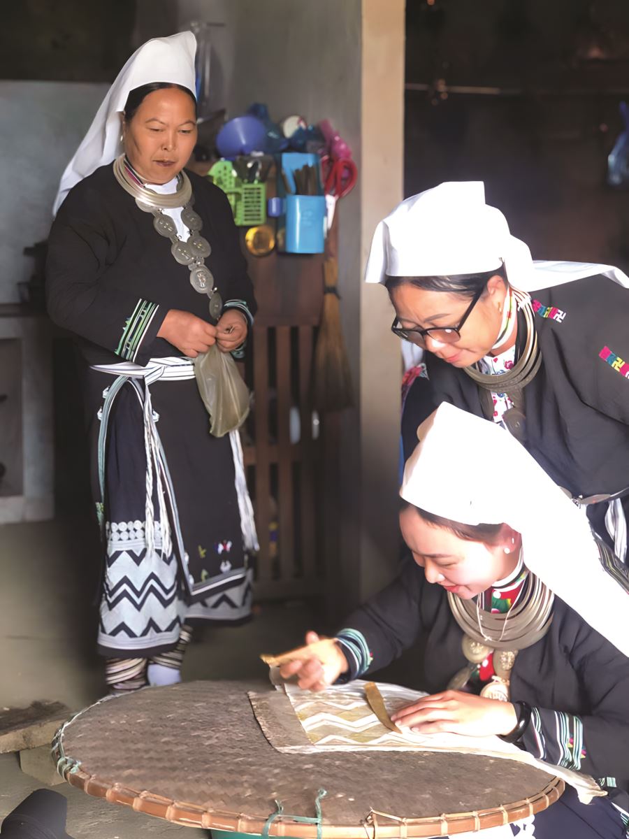 Cộng đồng dân tộc Dao tiền ở huyện Ngân Sơn tỉnh Bắc Kạn luôn ý thức trong việc gìn giữ, bảo tồn những giá trị văn hóa truyền thống đặc sắc của dân tộc mình, từ kiến trúc nhà cửa, đời sống văn hóa, phong tục tập quán, tín ngưỡng, tiếng nói đến trang phục. Đặc biệt phụ nữ thường xuyên quan tâm truyền dạy nghề thêu, in hoa văn bằng sáp ong cho thế hệ kế cận như một nét văn hóa độc đáo và cũng là niềm tự hào của họ.