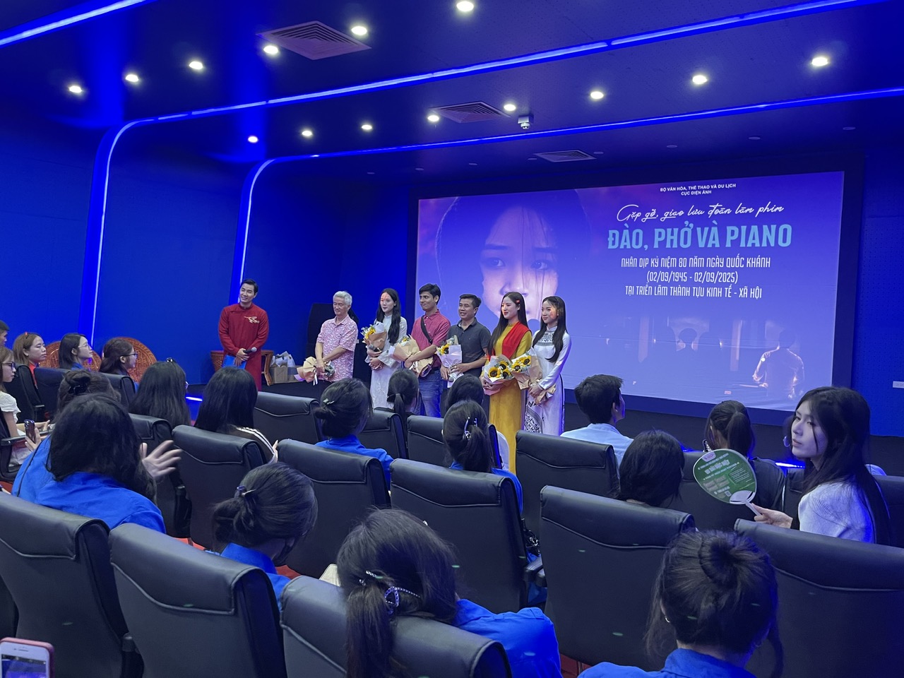 Sáng 28-8, trong khuôn khổ Lễ khai mạc Triển lãm thành tựu đất nước "80 năm hành trình Độc lập- Tự do- Hạnh phúc", khán giả đã được thưởng thức bộ phim “Đào, phở và piano”, đây là suất chiếu đầu tiên của Chương trình chiếu phim chào mừng kỷ niệm 80 năm Cách mạng Tháng Tám và Quốc khánh 2-9 do Cục Điện ảnh (Bộ VHTTDL) thực hiện.