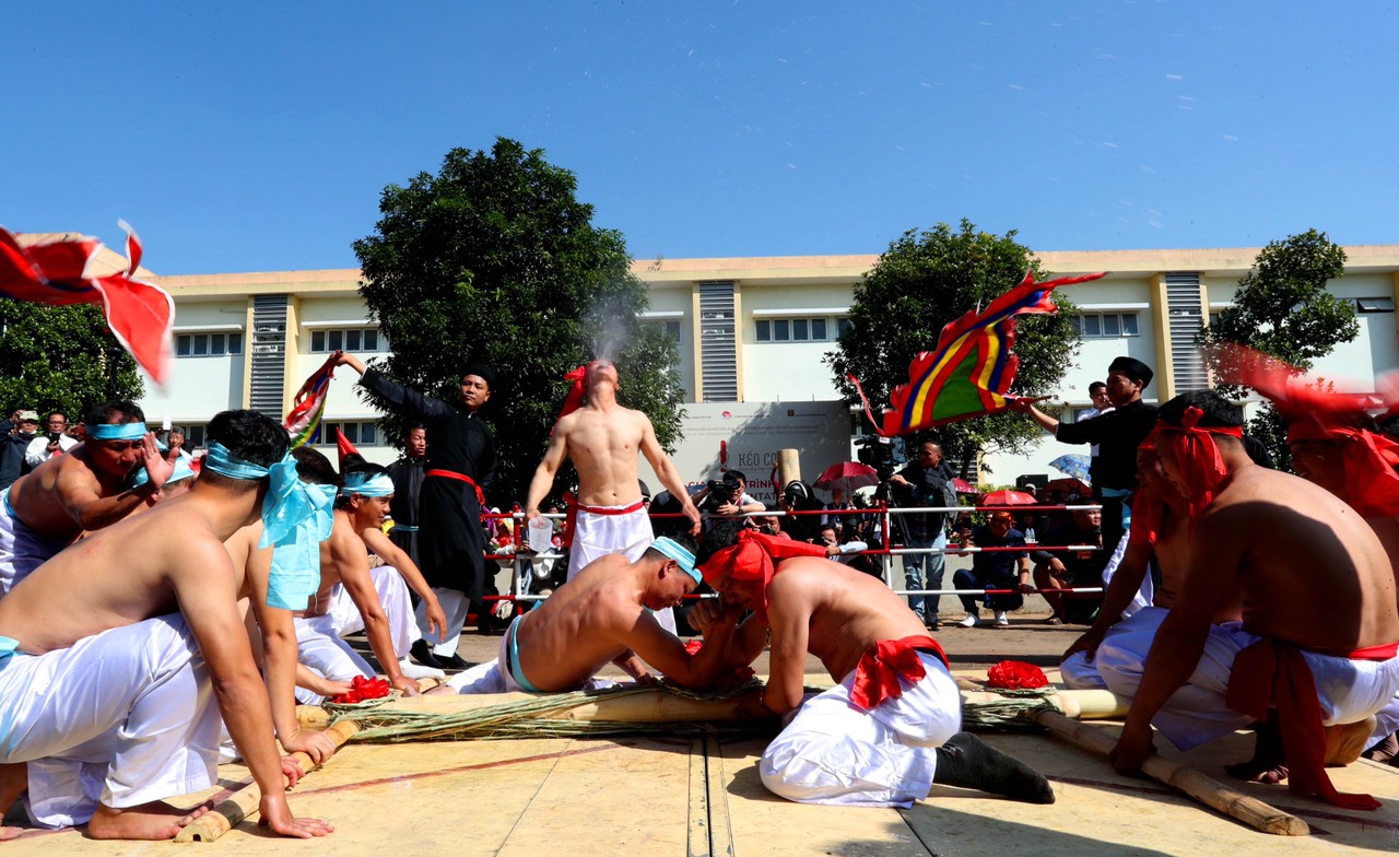 Kéo co mang giá trị văn hóa truyền thống đặc sắc của người Tày (Lào Cai), là nghi lễ không thể thiếu trong Lễ hội xuống đồng - Ảnh: Trần Huấn