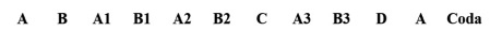 Trong sơ đồ này có thể thấy sau khi trần thuật 2 chủ đề (A và B), các biến khúc lần lượt xuất hiện