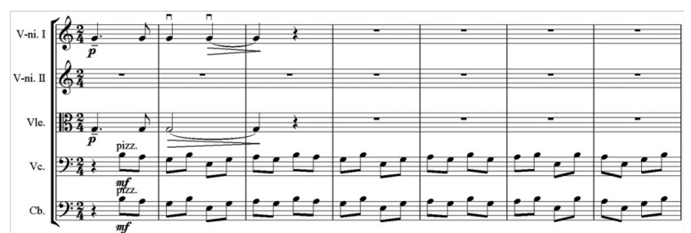 Trong chương nhạc này, nhạc sĩ Nguyễn Xinh còn sử dụng chủ đề âm nhạc chính lấy nguyên vẹn chất liệu từ bài Lý ngựa ô dân ca Nam Bộ với âm điệu tươi vui, phóng khoáng do bộ dây trình bày ở tốc độ nhanh.