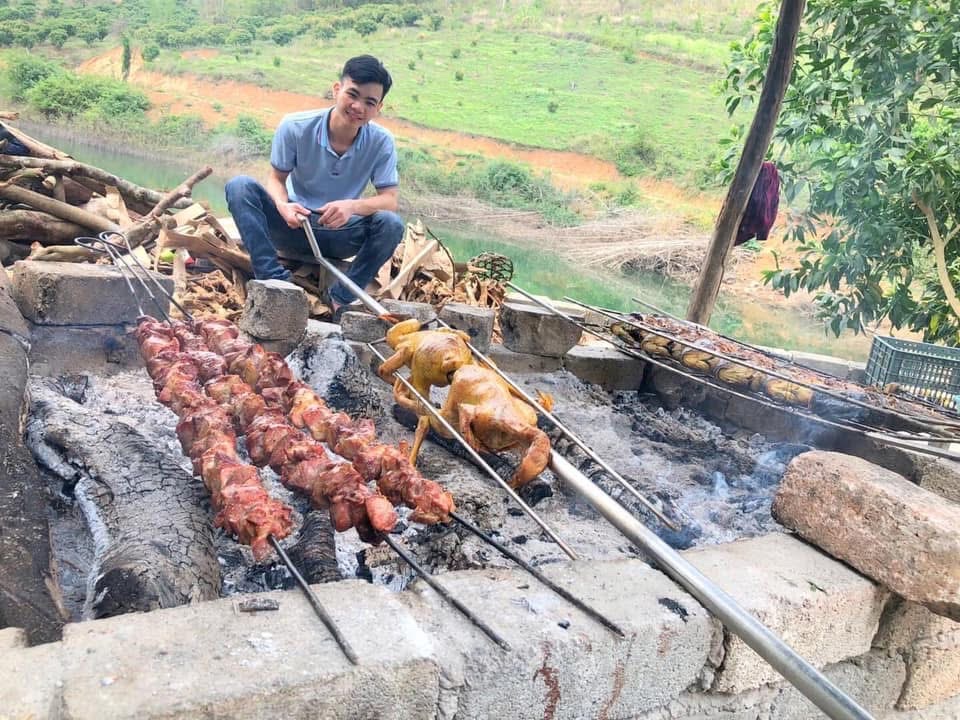 Người dân bản địa làm món thịt xiên, cá, gà nướng