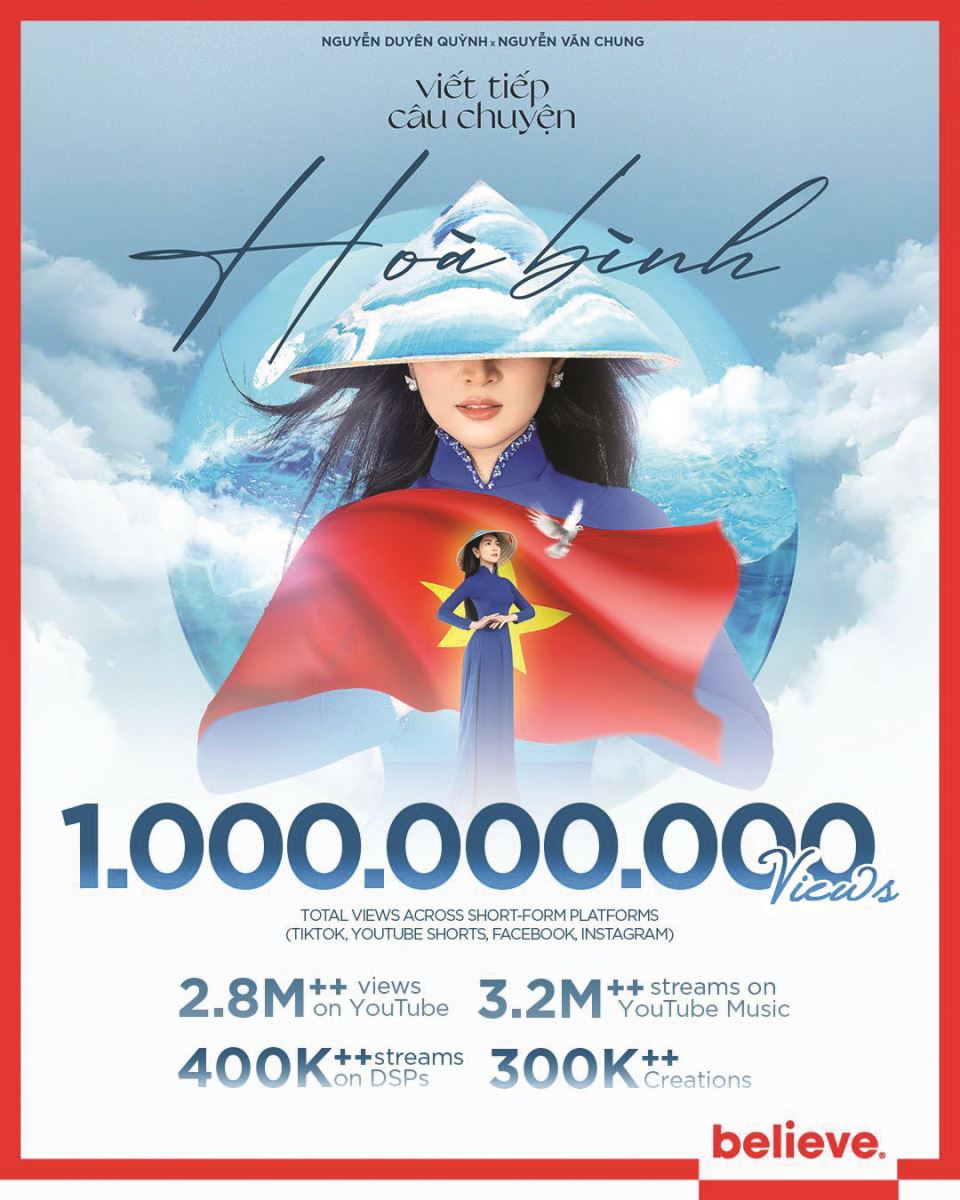 Những con số ấn tượng của ca khúc "Viết tiếp câu chuyện hòa bình" tính đến ngày 17/4. - Ảnh FBNV