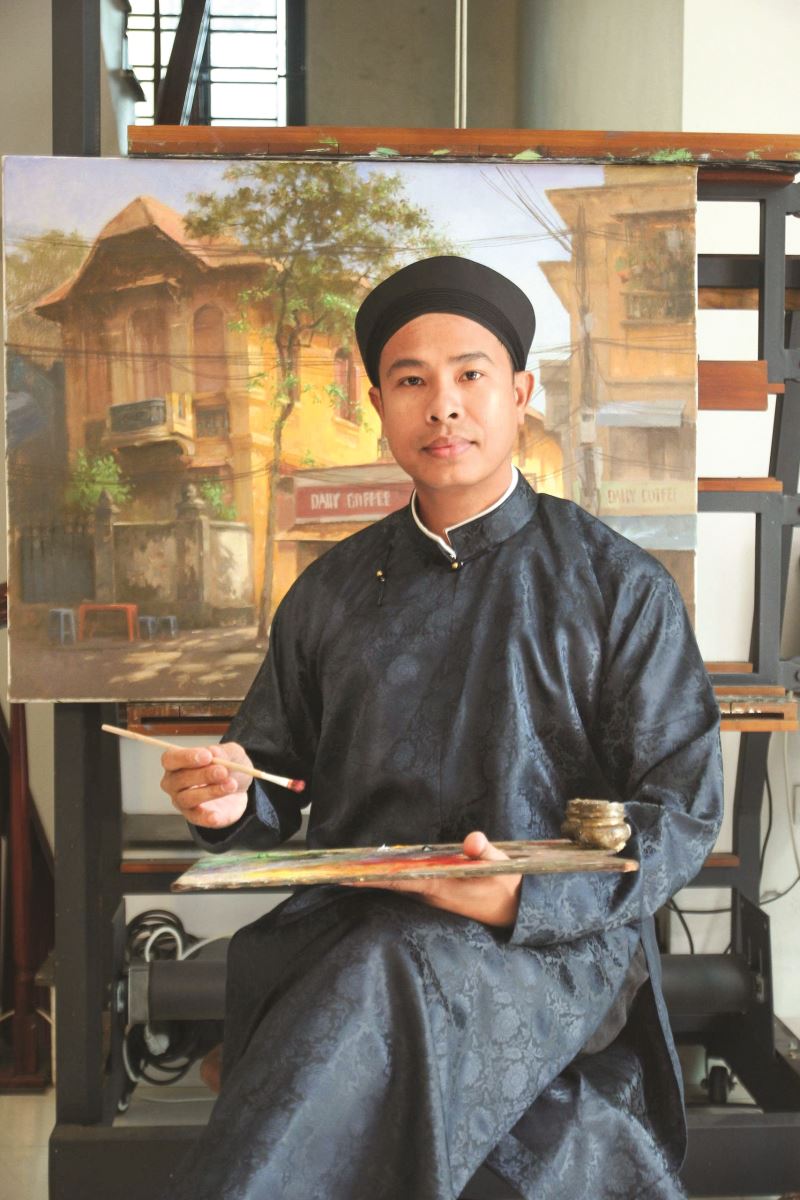 Không làm việc theo trí nhớ hay phác thảo sẵn, anh thường xuyên mang giá vẽ đến tận nơi - ngồi giữa bản làng vùng cao, bên khung cửa sổ cũ kỹ, hay trong một góc bếp âm ấm - để cảm nhận không gian bằng toàn bộ giác quan. Với anh, trực họa là một trạng thái nhập thân vào thời gian và ánh sáng của chính cảnh vật. Tranh anh không tái tạo lại thế giới, mà khiến người xem như hiện diện cùng anh tại thời điểm ấy - một sáng sớm ở Lũng Cú (Hà Giang), một buổi chiều nơi phố cổ Hà Nội, hay một khoảnh khắc trong căn bếp nồng khói giữa mùa Đông miền Bắc.