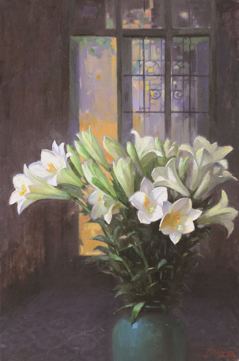 Lê Thư, Ngoài song nắng, sơn dầu, 2024