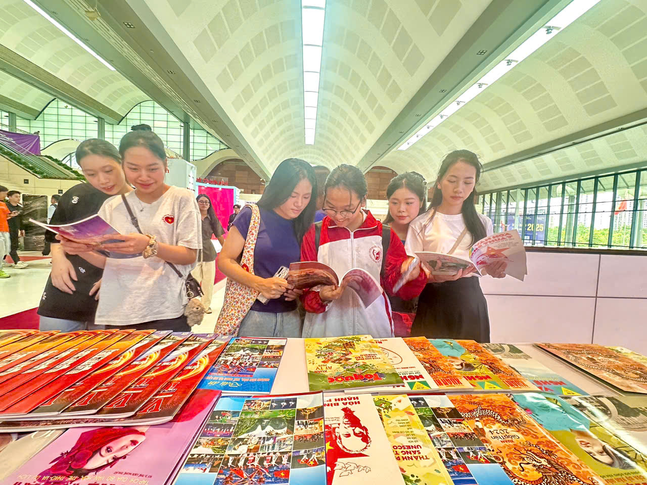 Bạn trẻ đọc ấn phẩm của Tạp chí Văn hóa Nghệ thuật - Ảnh: Hương Giang