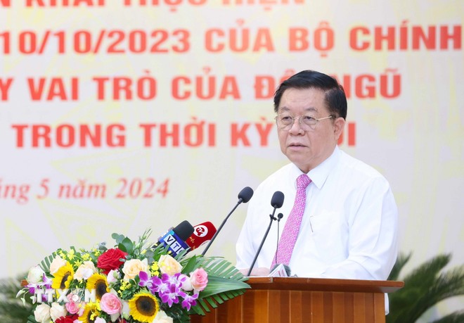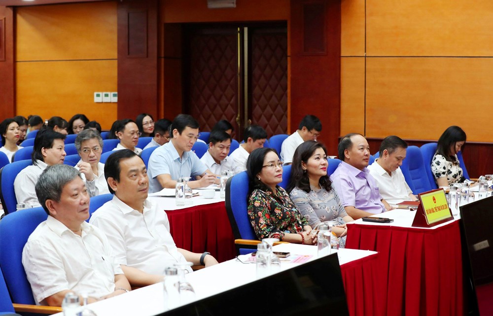 Trưởng Ban Tuyên giáo Trung ương Nguyễn Trọng Nghĩa; Phó Thủ tướng Chính phủ Lê Minh Khái và các đại biểu dự điểm cầu trực tiếp tại Ban Tuyên giáo Trung ương