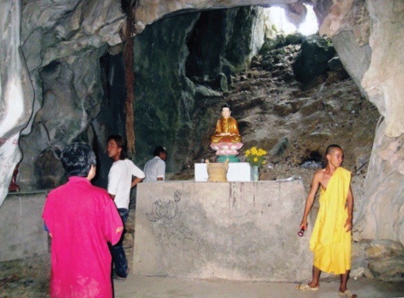 Chúng tôi theo sư Công khám phá hang Phật Cô Đơn. Đường đi qua nhiều ngóc ngách quanh co lắt léo, có khi phải bò qua những mỏm đá. Hang nhỏ bằng một gian phòng khách, có một tượng Phật lẻ loi bằng đá mà ai đó đã đặt chẳng biết tự bao giờ! Từ cửa hang, ta nhìn thấy biển đẹp như bức tranh thủy mặc... Hành trình dài chừng 200m khám phá hang Gia Long dành cho những ai thích mạo hiểm. Hang nằm sát biển ở độ cao trên 10 mét, vách gần như thẳng đứng. Có hai con đường đi đến hang, một dọc theo mép biển, hai vượt qua đỉnh núi đá tai mèo cheo leo. Cả hai con đường này rất hiểm trở với gành đá, vực sâu, núi cao, gây cảm giác mạnh cho khách!