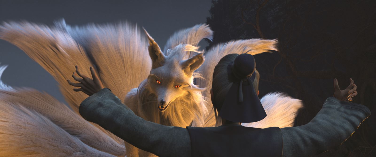 Đặc sắc nhất ở hình tượng Cửu vĩ hồ trong phim là phần lông đuôi dài, óng mượt. Đội ngũ làm phim sử dụng kỹ thuật grooming kết hợp mô phỏng vật lý, xử lý từng lớp lông bằng hệ thống hair shader riêng, để tạo được hiệu ứng bồng bềnh, ánh sáng xuyên qua như có ma lực. Kết hợp với những pha biến hoá kỳ ảo, các bộ phận trong dây chuyền sản xuất như Modeling, Animation, VFX, Compositing… phải phối hợp ăn ý ở từng công đoạn nhỏ nhất. Đây là một trong những khâu kỹ thuật khó nhất, nhưng mang lại hiệu quả hình ảnh thuyết phục.