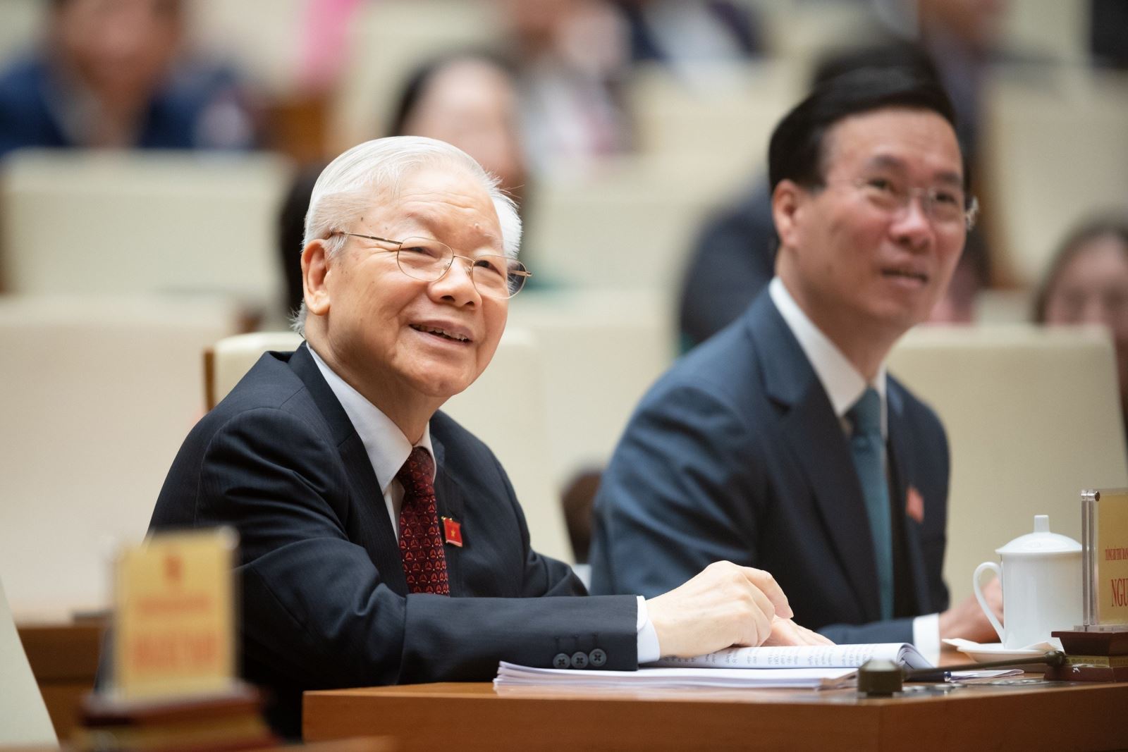 Tổng bí thư Nguyễn Phú Trọng và Chủ tịch nước Võ Văn Thưởng tham dự phiên họp Bế mạc Quốc hội