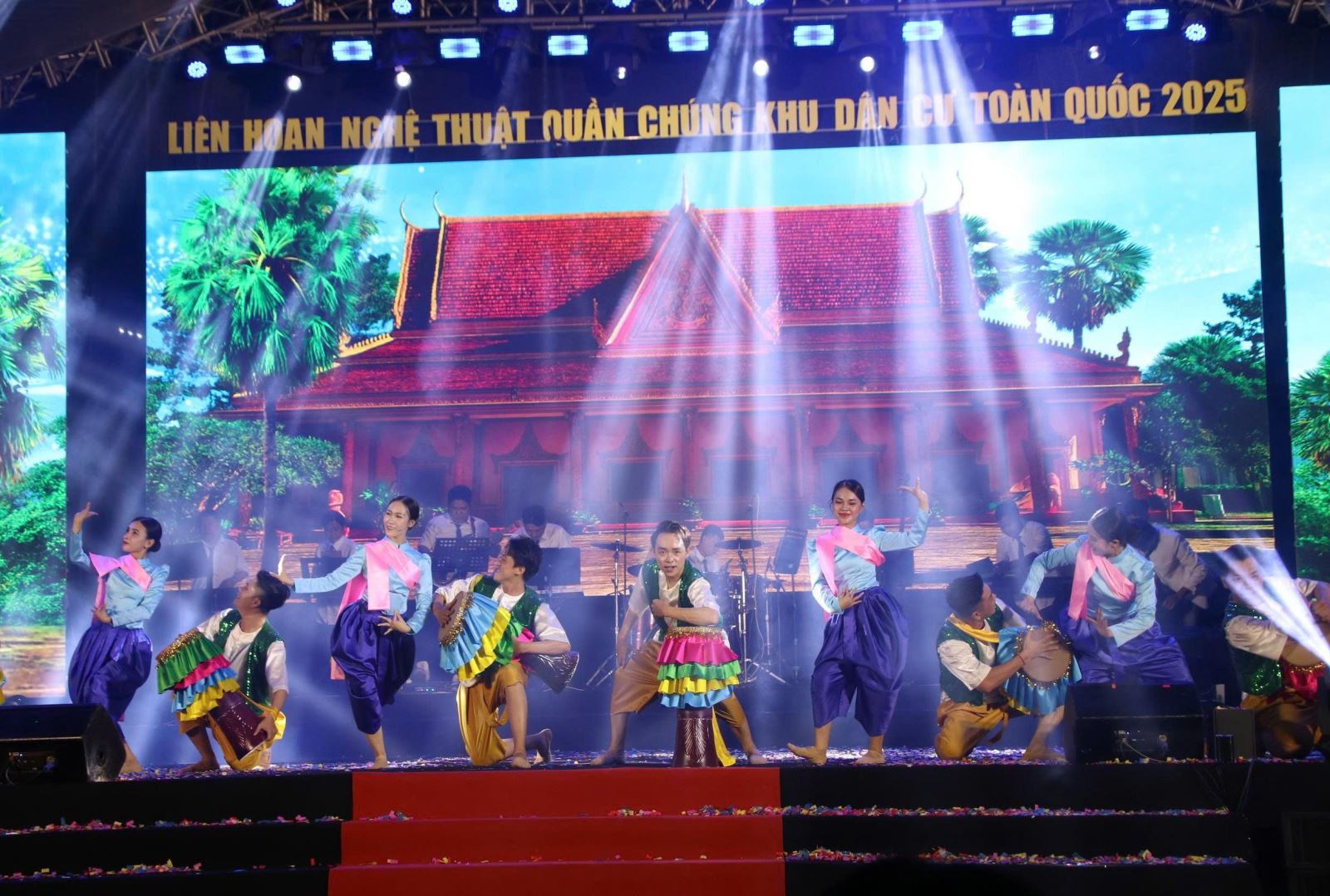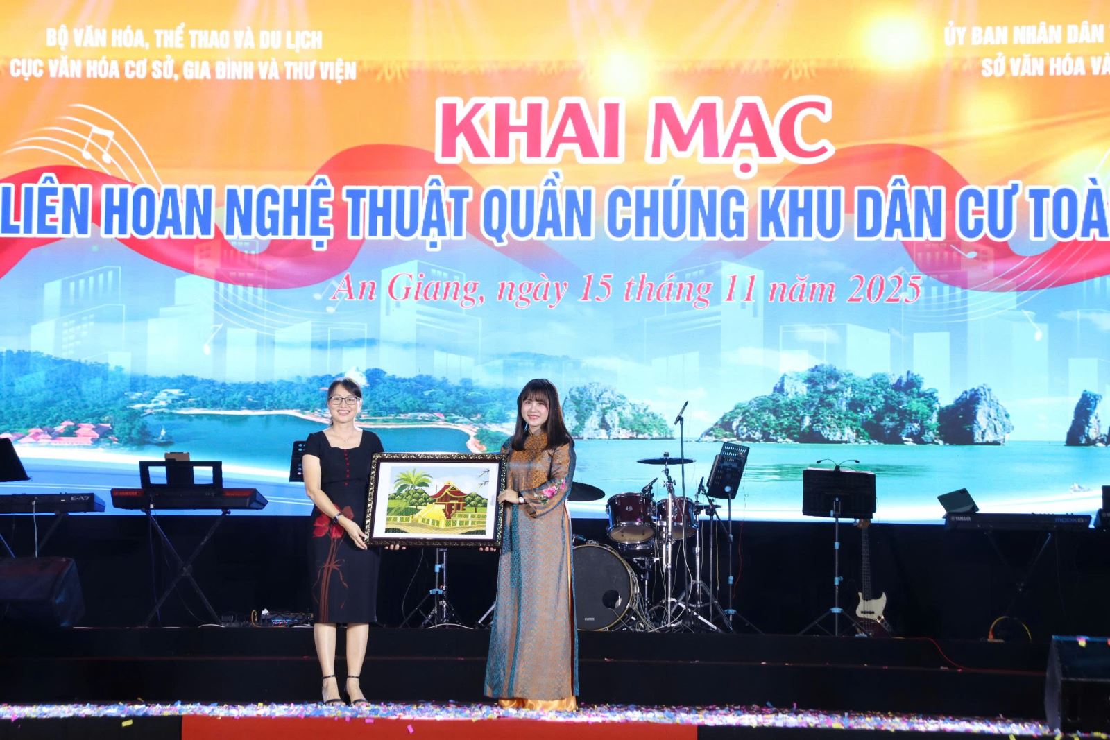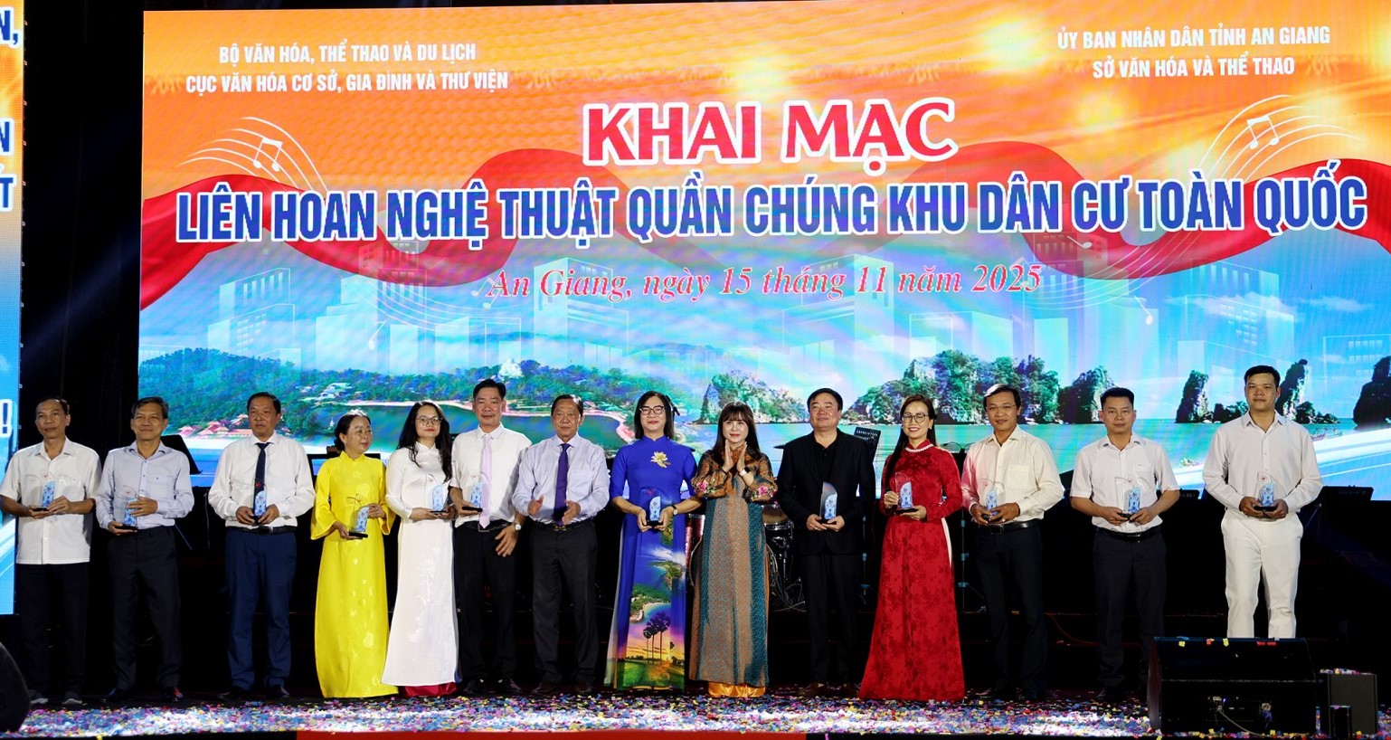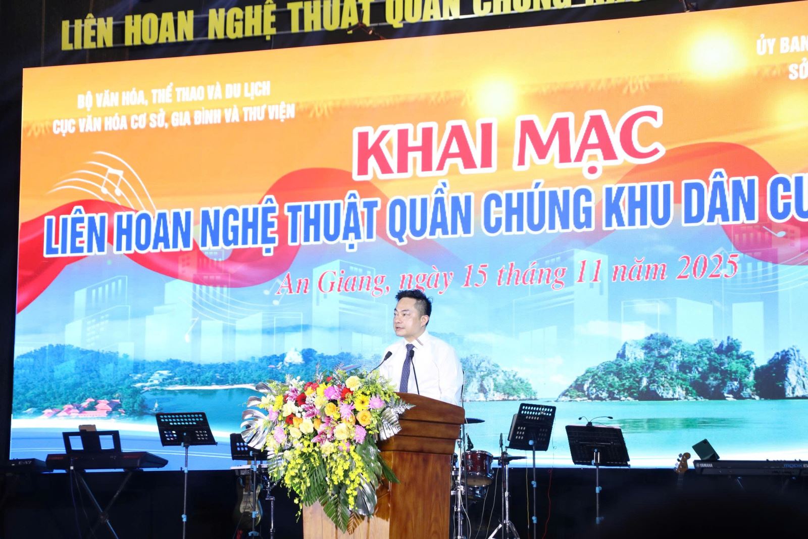 Phát biểu chào mừng Liên hoan, ông Nguyễn Văn Mao - Phó Giám đốc Sở VHTT tỉnh An Giang cho biết: Trong những năm qua, cùng với phát triển kinh tế - xã hội, An Giang luôn chú trọng phát triển văn hóa, gia đình; không ngừng đầu tư cho phong trào văn nghệ quần chúng, gắn kết hoạt động văn hóa với xây dựng, phát triển đời sống văn hóa cơ sở ngày càng phong phú, bền vững. Trong đó, Liên hoan Nghệ thuật quần chúng khu dân cư toàn quốc 2025 là hoạt động có ý nghĩa chính trị, văn hóa sâu sắc nhằm tôn vinh các khu dân cư tiêu biểu, những tập thể, cá nhân hoạt động tích cực trong phong trào “Toàn dân đoàn kết xây dựng đời sống văn hóa”.