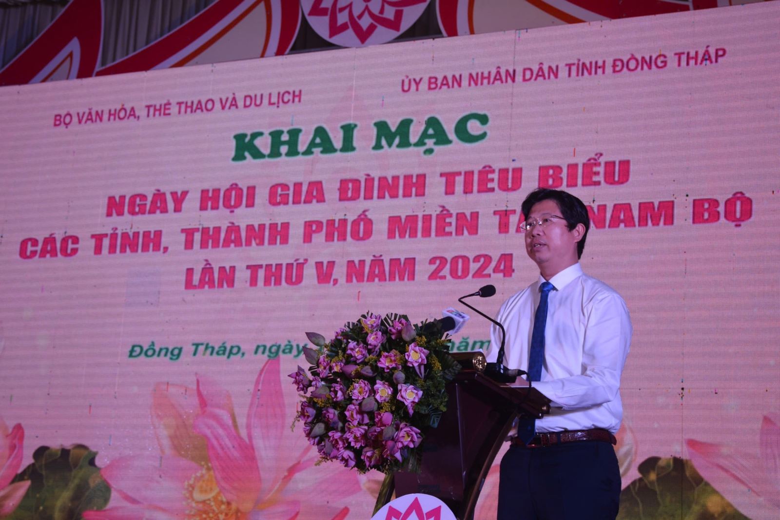 Phát biểu tại buổi lễ, Phó Chủ tịch UBND tỉnh Đồng Tháp Huỳnh Minh Tuấn bày tỏ niềm vinh dự được đón các đại biểu, các đoàn gia đình về tham dự Ngày hội. Bên cạnh các hoạt động giàu ý nghĩa nhân văn của Ngày hội, đại biểu và du khách sẽ có những trải nghiệm, khám phá vùng đất thiên nhiên, con người Đồng Tháp thân thiện và hiếu khách.