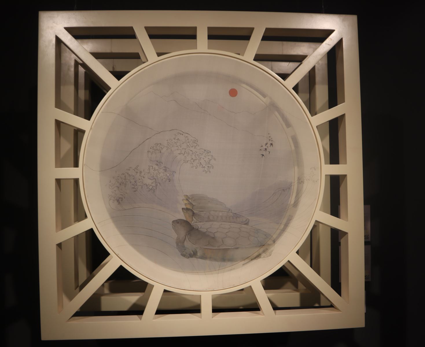 Tác phẩm tranh lụa "Trùng điệp" là sự kết hợp các hình tượng nổi bật trong văn hóa tranh Ukiyo-e và không gian mang tính biểu tượng của Thủ đô Hà Nội