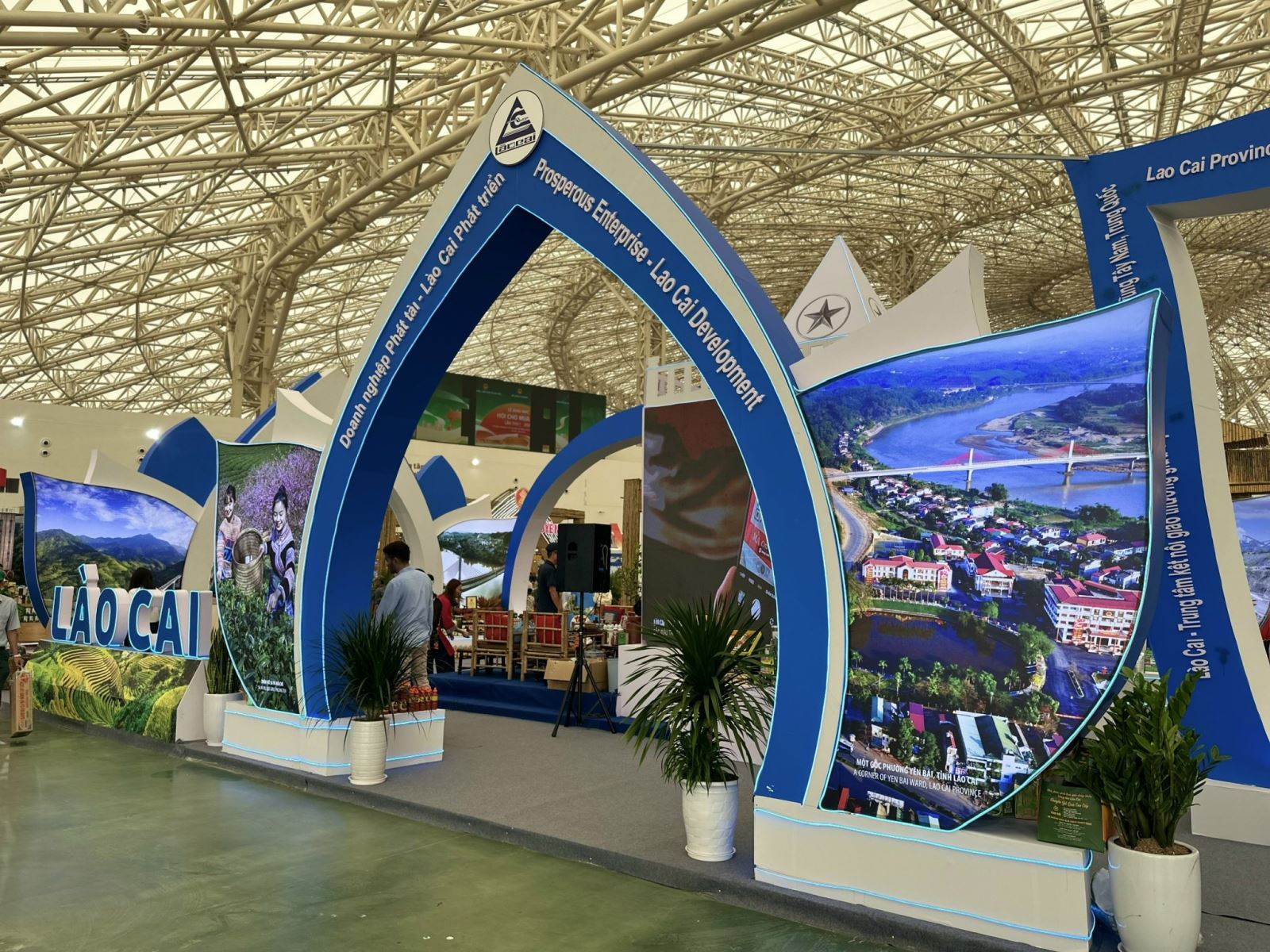 Ở phía Tây Bắc, Lào Cai với phong cách hiện đại nhưng vẫn đậm chất vùng cao. Cổng chào cách điệu hình núi non uốn lượn, bao quanh là các màn hình lớn trình chiếu cảnh sắc Sa Pa, ruộng bậc thang Mường Hoa, cây cầu Kim Tân bắc qua sông Hồng. Gian trưng bày tập trung giới thiệu sản phẩm nông nghiệp, du lịch sinh thái và các đặc sản như chè Shan tuyết, mật ong, dược liệu quý, cho thấy Lào Cai đang nỗ lực hướng đến phát triển xanh, bền vững và hội nhập quốc tế.
