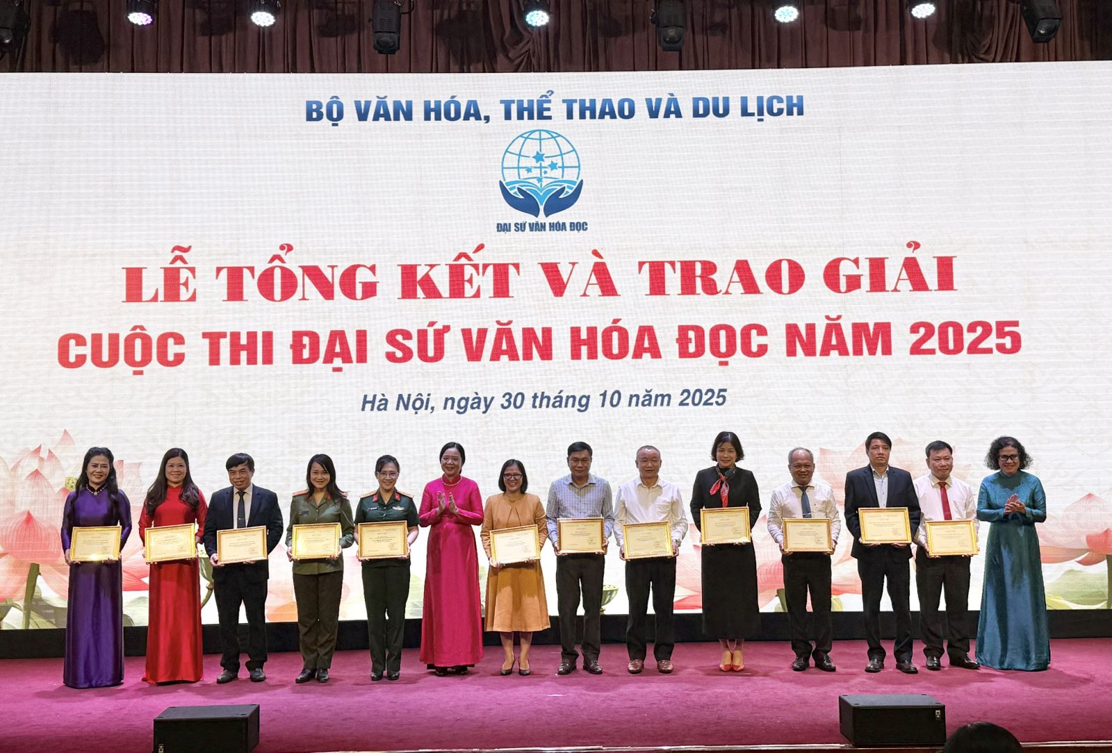 Sáng 30-10, tại Hà Nội, Bộ VHTTDL tổ chức Lễ Tổng kết và trao giải Đại sứ Văn hóa đọc toàn quốc năm 2025 với sự tham dự của Thứ trưởng Bộ VHTTDL Trịnh Thị Thủy.