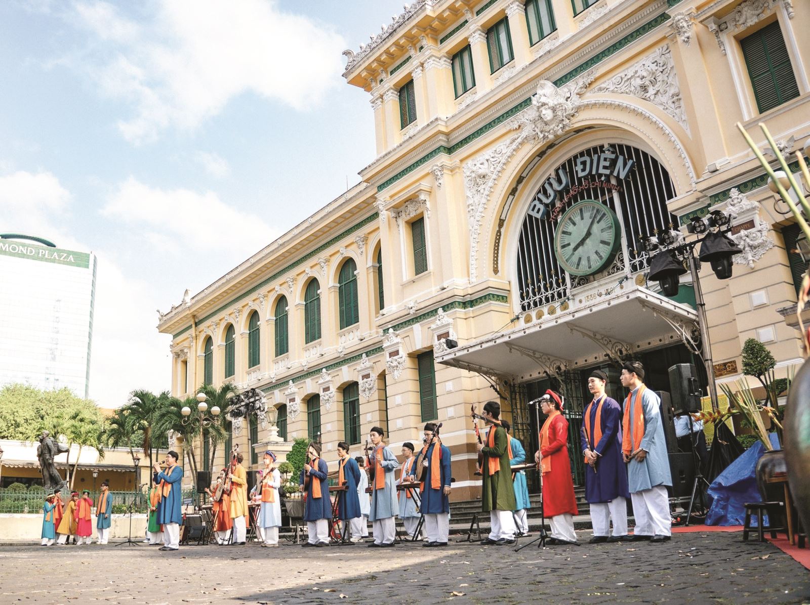 Biểu diễn Cải lương và nhạc cụ dân tộc trước Bưu điện TP.HCM
