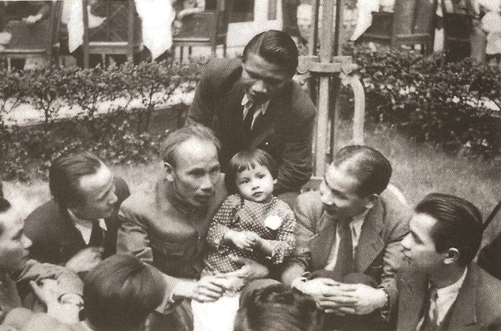 Chủ tịch Hồ Chí Minh gặp gỡ Việt kiều tại Pháp, năm 1946 (Tài liệu lưu trữ Bộ Ngoại giao)
