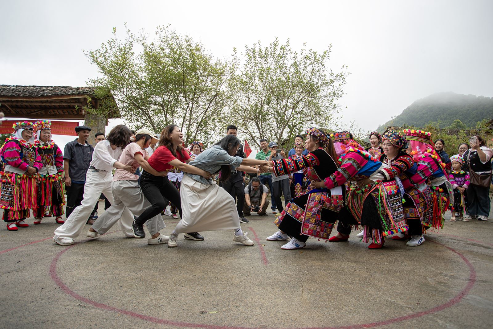Du khách tham gia trò chơi dân gian kéo co bằng tay cùng đồng bào Lô Lô- Ảnh: MP