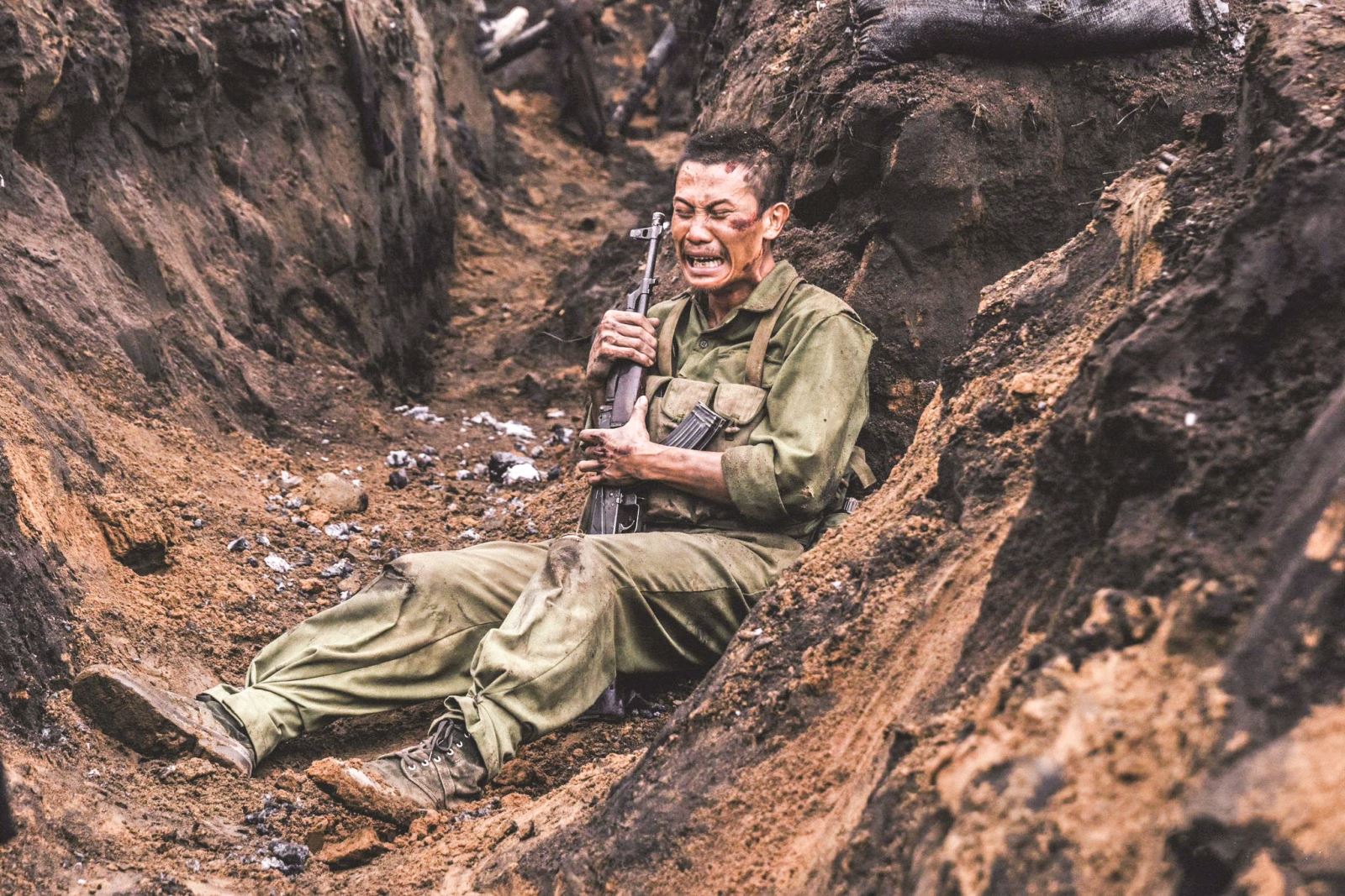 "Giữa chiến hào, nước mắt rơi thay lời tiễn biệt" cảnh trong phim Mưa đỏ - Ảnh: Phạm Tân
