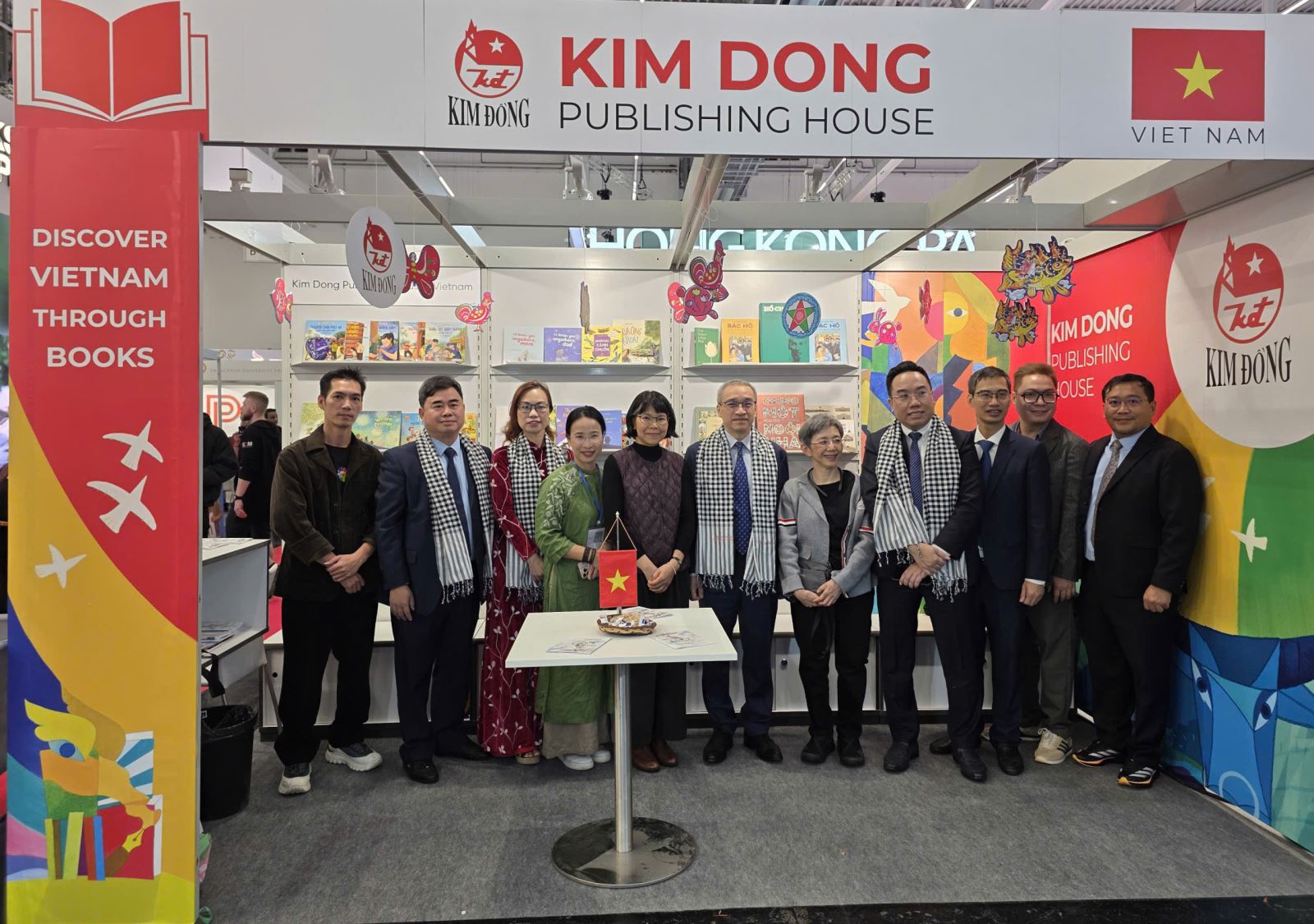 Thứ trưởng Bộ VHTTDL Phan Tâm và đoàn công tác thăm gian hàng sách của Nxb Kim Đồng tại Hội sách Quốc tế Frankfurt 2025