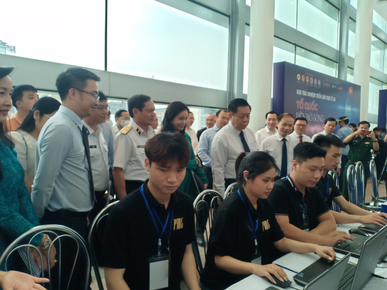 Đồng chí Nguyễn Trọng Nghĩa tham quan và trải nghiệm Triển lãm thực tế ảo "Tổ quốc bên bờ sóng"