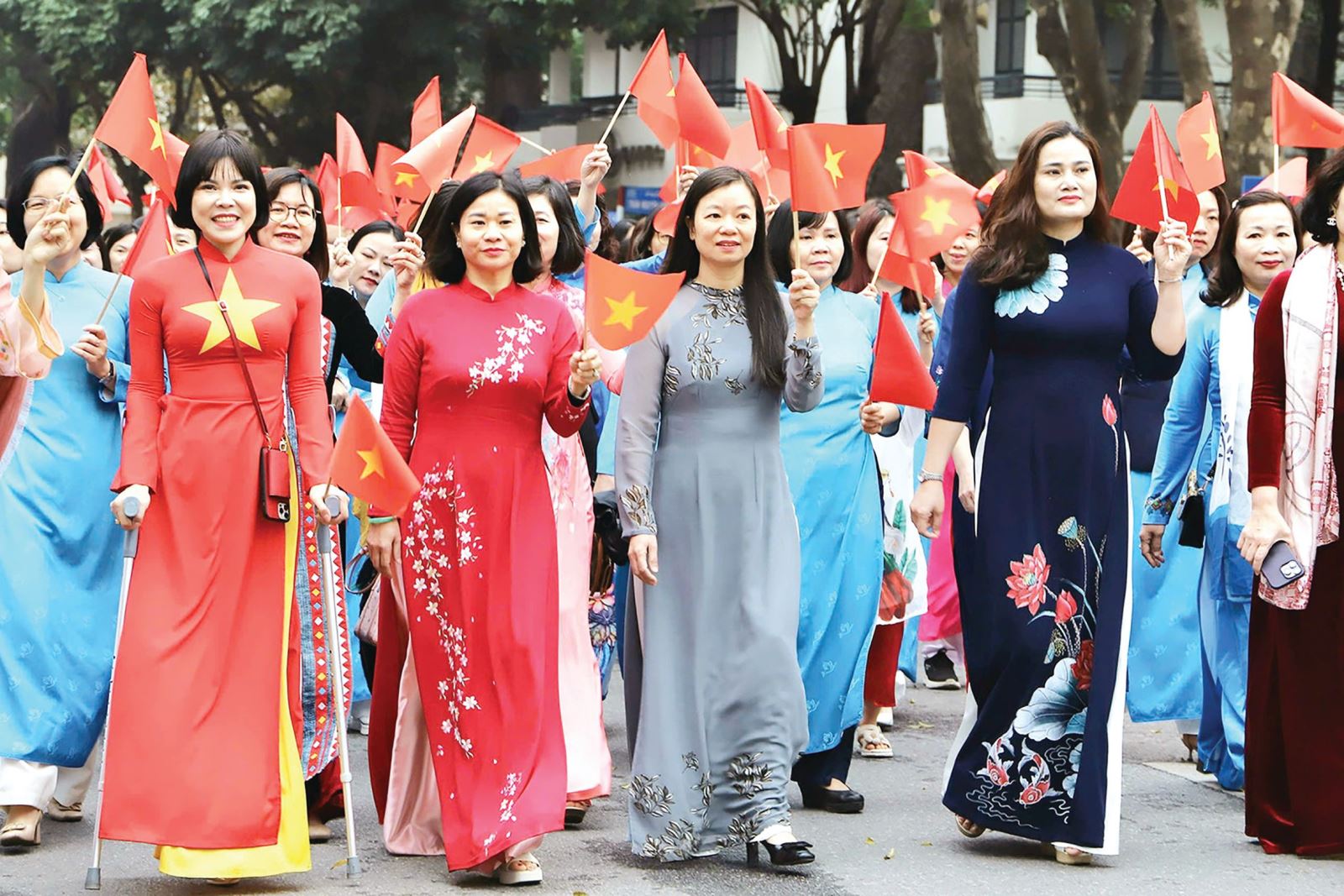 Lãnh đạo Hội Liên hiệp Phụ nữ Việt Nam tham gia lễ diễu hành áo dài - Nguồn: nhandan.vn