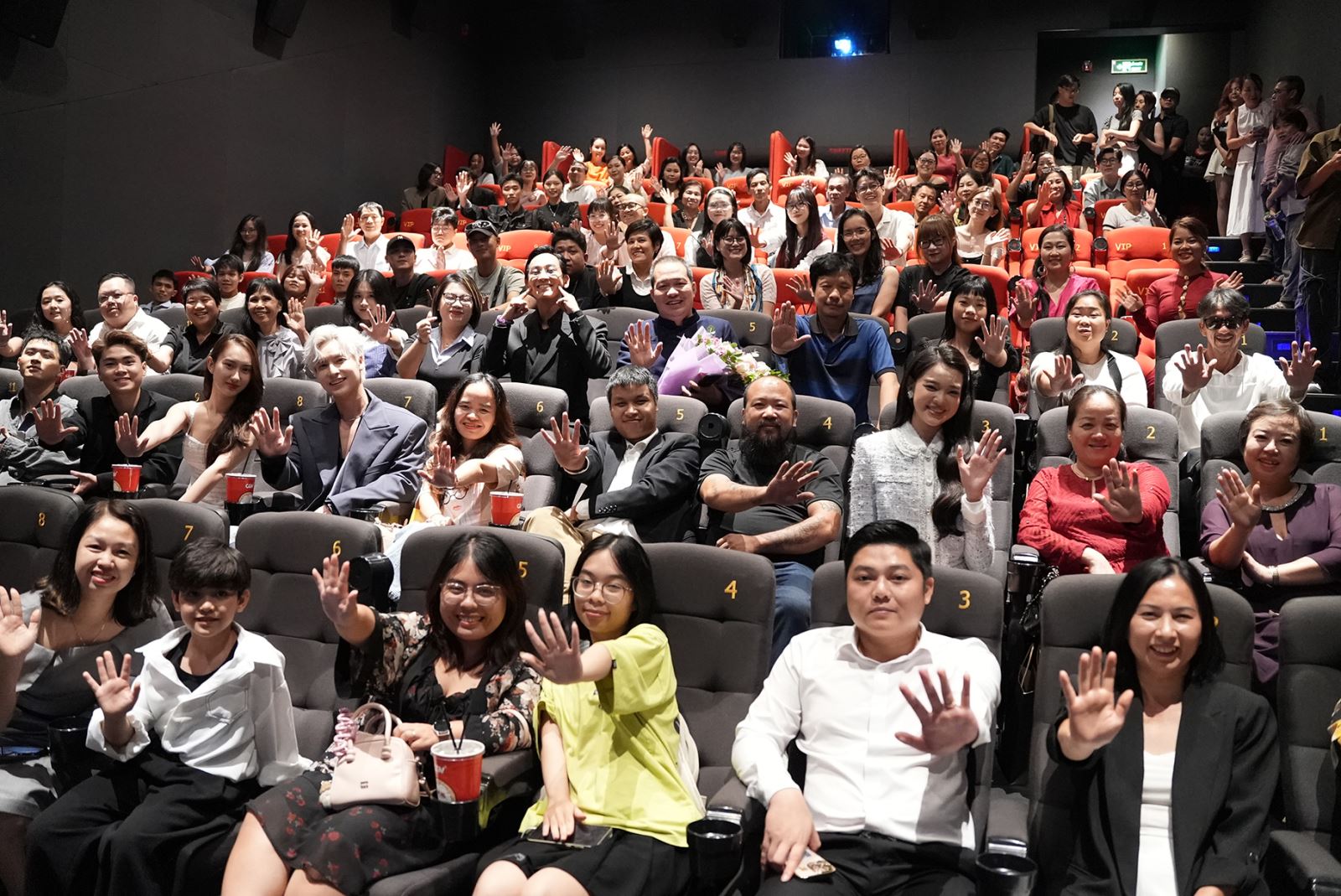 Đoàn phim chụp ảnh cùng khán giả sau buổi công chiếu ra mắt