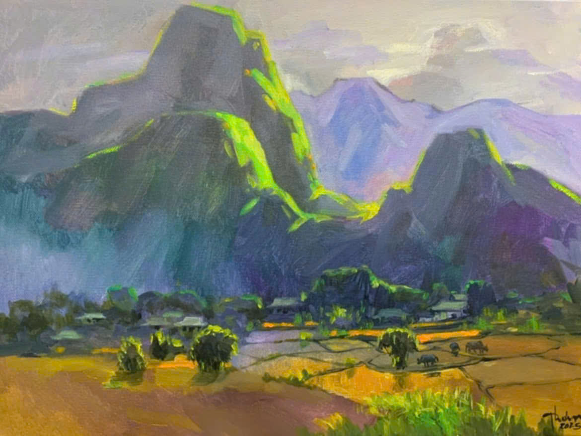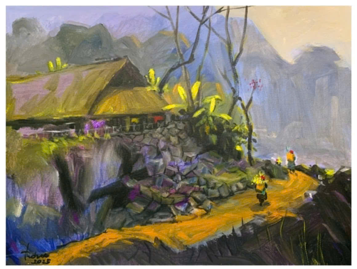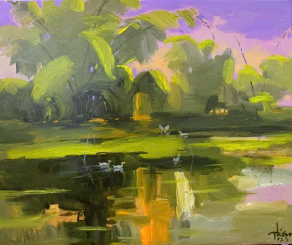 Trong khi không ít người mải mê theo đuổi trường phái trừu tượng, hay siêu thực, họa sĩ Quỳnh Thơm đến từ Vĩnh Phúc (nay là Phú Thọ) lại lặng lẽ chọn đề tài đồng quê, một hướng đi quen thuộc nhưng lại đòi hỏi sự dấn thân, tinh tế và chân thành đến tận cùng.