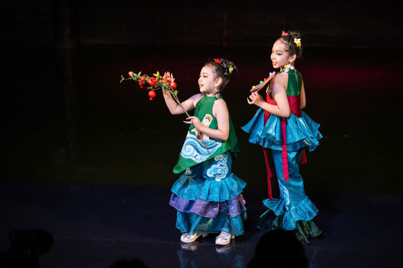 Sắc Việt 2025 đã thành công trong việc thổi hồn vào di sản văn hóa dân tộc thông qua sự kết hợp độc đáo giữa múa rối truyền thống và thời trang nhí đương đại. Không chỉ là một buổi trình diễn đơn thuần, mà còn là một cuộc giao thoa đầy xúc cảm giữa nghệ thuật múa rối nghìn năm tuổi và ngôn ngữ thiết kế thời trang mới mẻ. Sân khấu thủy đình quen thuộc của Nhà hát Múa rối Việt Nam đã trở thành một sàn diễn độc đáo, nơi những con rối truyền thống uyển chuyển kết hợp cùng các người mẫu nhí duyên dáng, tạo nên một không gian nghệ thuật đầy mê hoặc. Mỗi tiết mục, mỗi bước catwalk đều là một câu chuyện kể về văn hóa Việt, được thể hiện một cách gần gũi, sáng tạo và sống động.