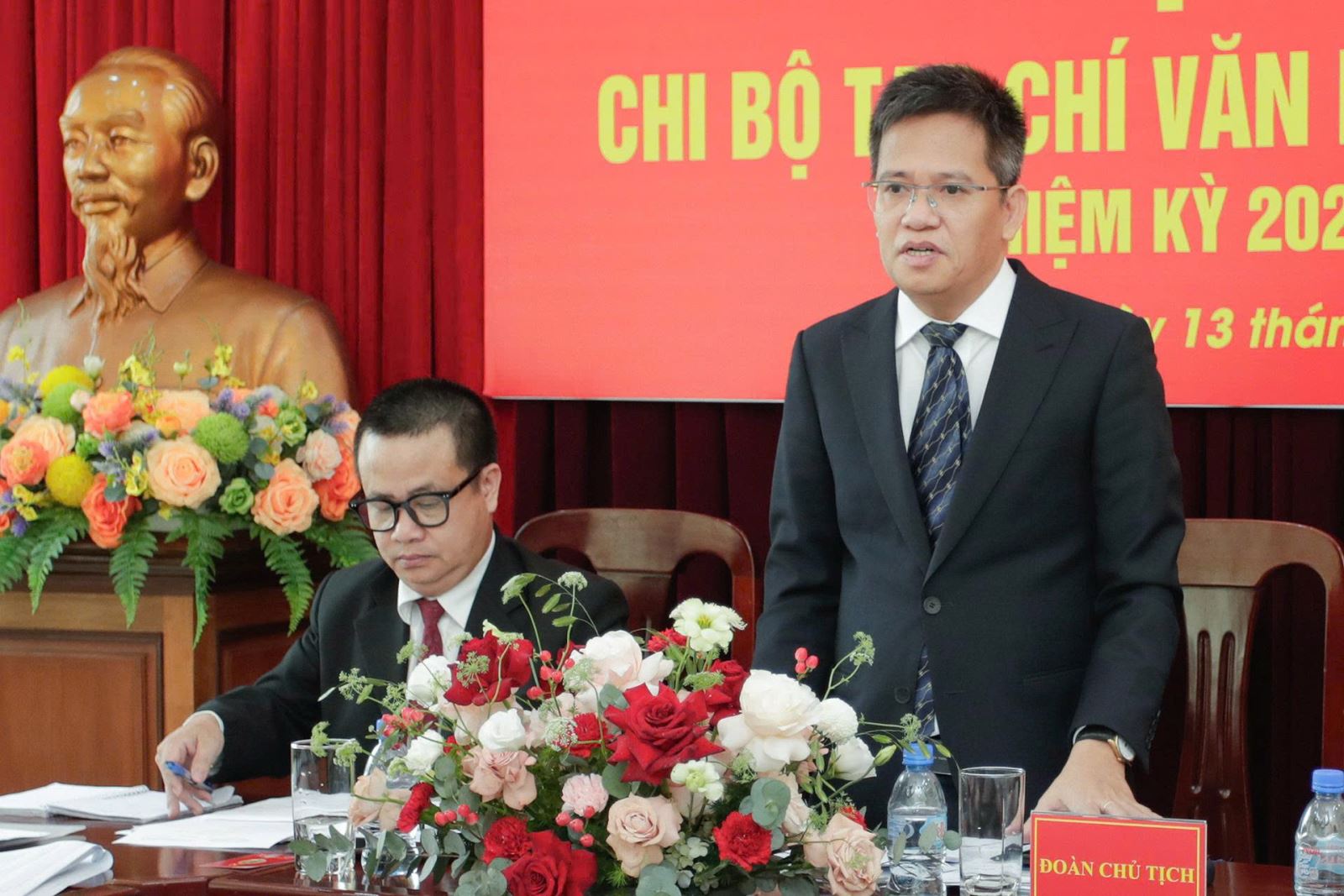 Đại diện Đảng ủy Bộ VHTTDL chúc mừng Ban chi ủy Chi bộ Tạp chí VHNT nhiệm kỳ 2025-2030 - Ảnh: Hương Giang