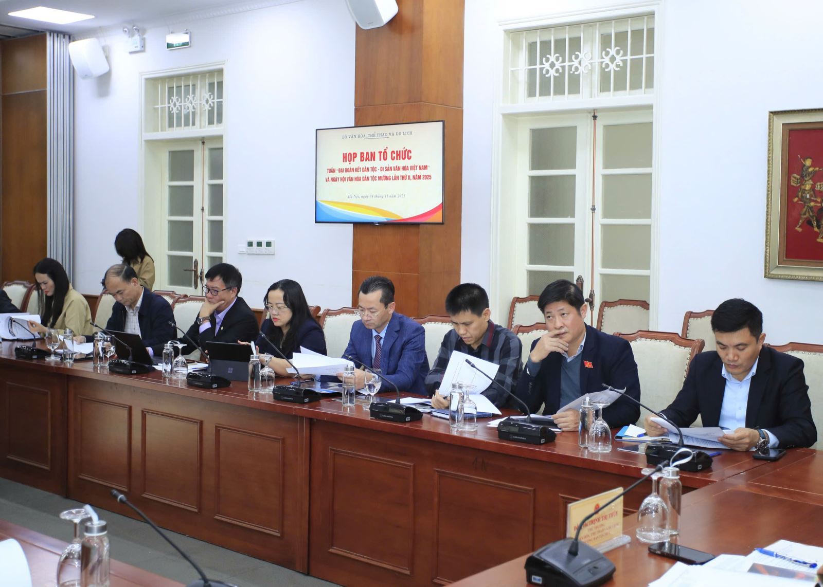 Tại buổi làm việc, ông Trần Mạnh Hùng, Phó Cục trưởng Cục Văn hóa các dân tộc Việt Nam (Bộ VHTTDL) đã báo cáo về tiến độ chuẩn bị tổ chức các sự kiện. Theo đó, Tuần “Đại đoàn kết các dân tộc - Di sản Văn hóa Việt Nam” và “Ngày hội văn hóa dân tộc Mường lần thứ II năm 2025” diễn ra từ ngày 18 đến 23-11 tại Làng Văn hóa - Du lịch các dân tộc Việt Nam gồm nhiều hoạt động nổi bật, ý nghĩa nhằm chào mừng Ngày Di sản Văn hóa Việt Nam (23-11) tại Sân lễ hội làng dân tộc Ê Đê, Khu các làng dân tộc II (ngày 18-11). Ngày 21-11 sẽ khai mạc “Ngày hội văn hóa dân tộc Mường lần thứ II năm 2025”. Sáng cùng ngày sẽ có Hội thảo khoa học “Bảo tồn, phát huy giá trị văn hóa truyền thống các dân tộc thiểu số gắn với phát triển du lịch”.