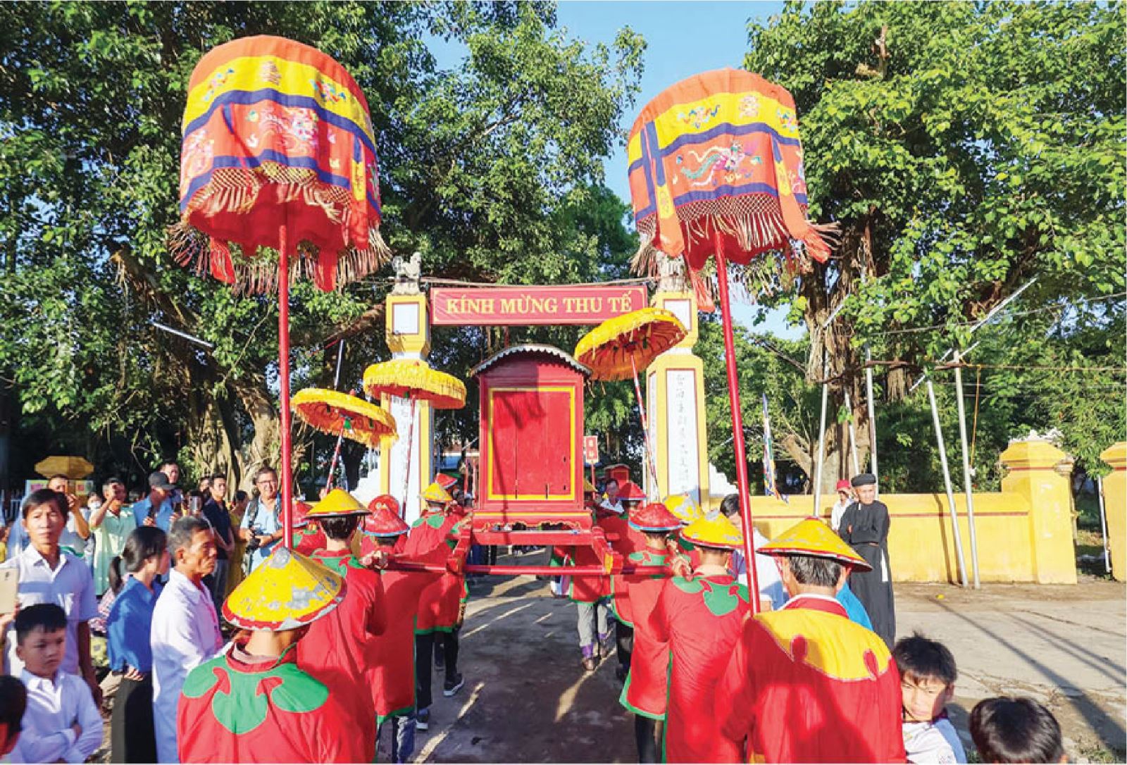 Quang cảnh lễ Nghinh Thần ở miếu Đồng Miệu về đình làng An Truyền trong lễ Thu tế