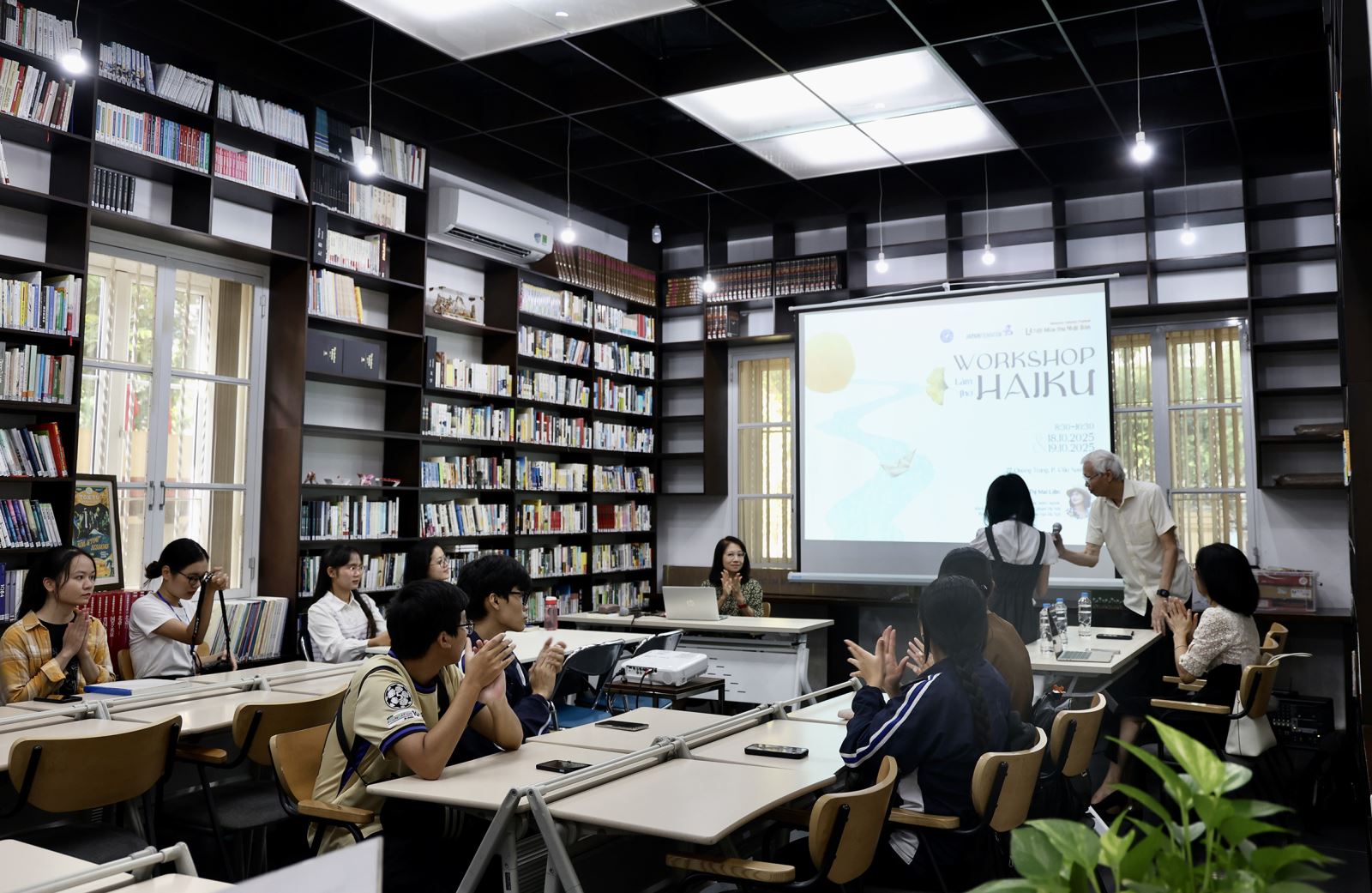Điểm nhấn của lễ hội, thu hút đông đảo người tham gia chính là workshop làm thơ Haiku. Được tổ chức tại không gian Thư viện yên tĩnh, Workshop làm thơ Haiku do CLB Haiku Việt thực hiện đã mang đến một trải nghiệm văn chương độc đáo. Haiku, thể thơ ngắn chỉ 17 âm tiết với cách “nói ít gợi mở nhiều”, ghi lại một khoảnh khắc sinh động. Chị Minh Nguyệt, một người tham dự chia sẻ: “Đây là lần đầu tiên tôi tham dự lễ hội mùa Thu Nhật Bản tại Hà Nội. Khi tham gia workshop tôi không chỉ hiểu thêm về cách làm thơ Haiku mà còn được vẽ trang trí bài thơ của mình sau khi sáng tác, chia sẻ cảm nhận về bài thơ của mình với mọi người”.