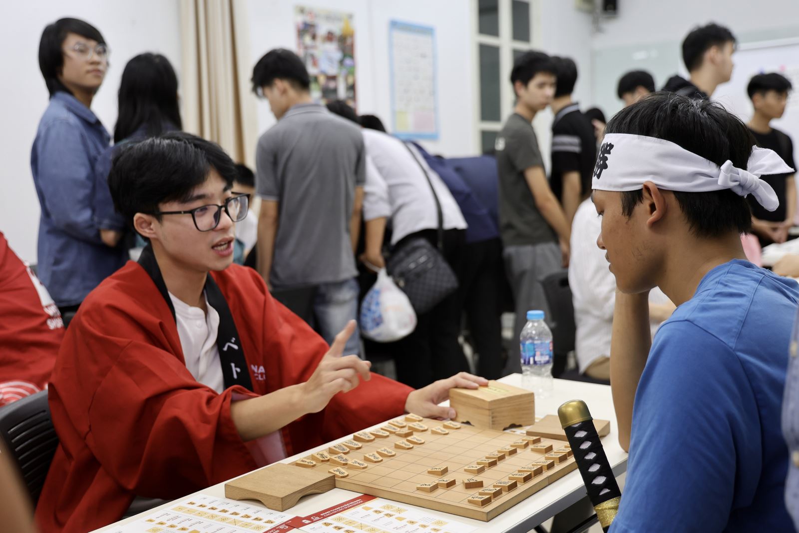 Với khu vực cờ Shogi, không khí trầm lắng hơn vì người chơi phải tập trung cao độ đi những bước cờ. Các thành viên CLB Shogi Việt Nam, chi nhánh của Liên đoàn Shogi Nhật Bản hướng dẫn luật chơi và chiến thuật cho người chơi. Bạn Trần Văn Mạnh, một người yêu thích cờ tướng, bày tỏ: “Shogi có nét tương đồng nhưng cũng rất khác biệt so với cờ tướng Việt Nam. Việc có thể thả quân cờ đã bị bắt vào lại bàn cờ tạo nên những chiến thuật rất độc đáo, đòi hỏi tư duy tính toán hơn”.