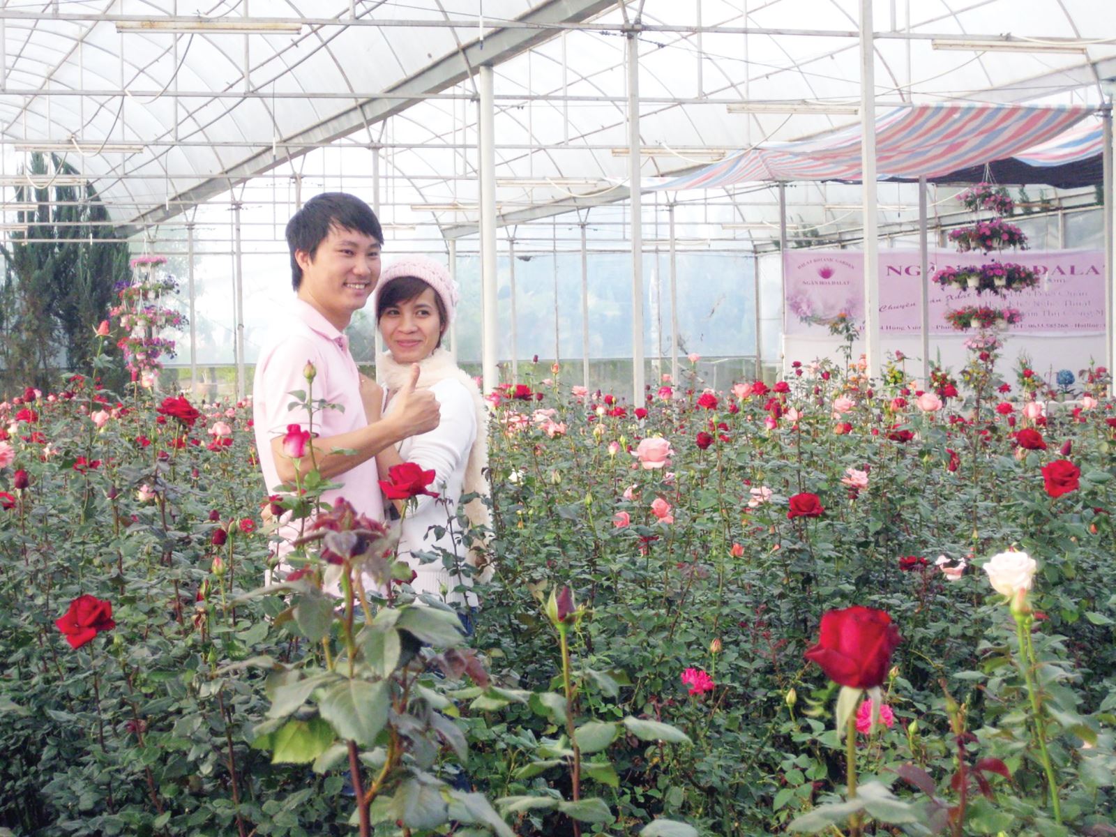 Khách du lịch tham quan, chụp ảnh trong vườn hoa hồng ở Làng hoa Vạn Thành - Đà Lạt