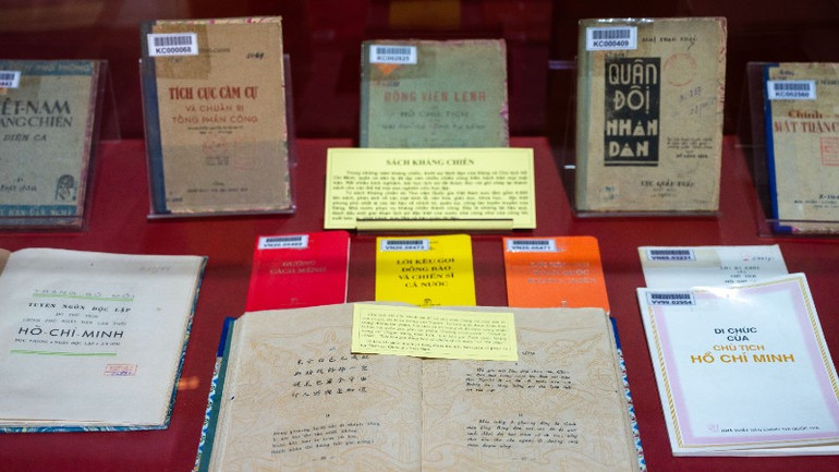 Tại triển lãm lần này, Cục Xuất bản, In và Phát hành còn phối hợp với Thư viện Quốc gia Việt Nam giới thiệu đến công chúng những tư liệu quý, những hiện vật gốc có giá trị là những cuốn sách, những trang in được xuất bản, in ấn ngay trong những ngày mùa Thu lịch sử năm 1945 và tại chiến khu Việt Bắc trong những năm khói lửa của cuộc kháng chiến chống Pháp.