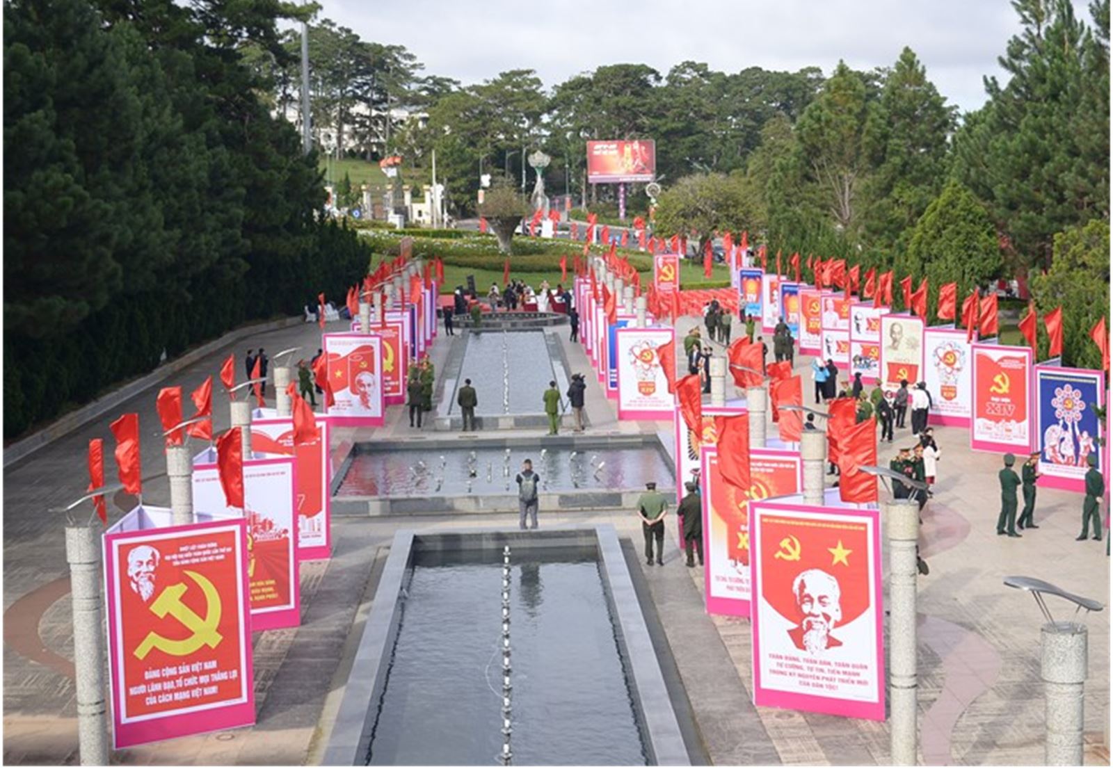 Ngày 27-11, tại Quảng trường Lâm Viên - Đà Lạt, Cục Văn hóa cơ sở, Gia đình và Thư viện (Bộ VHTTDL) đã phối hợp với Sở VHTTDL tỉnh Lâm Đồng tổ chức Khai mạc Triển lãm tranh cổ động tấm lớn tuyên truyền về Đại hội Đại biểu toàn quốc lần thứ XIV của Đảng.