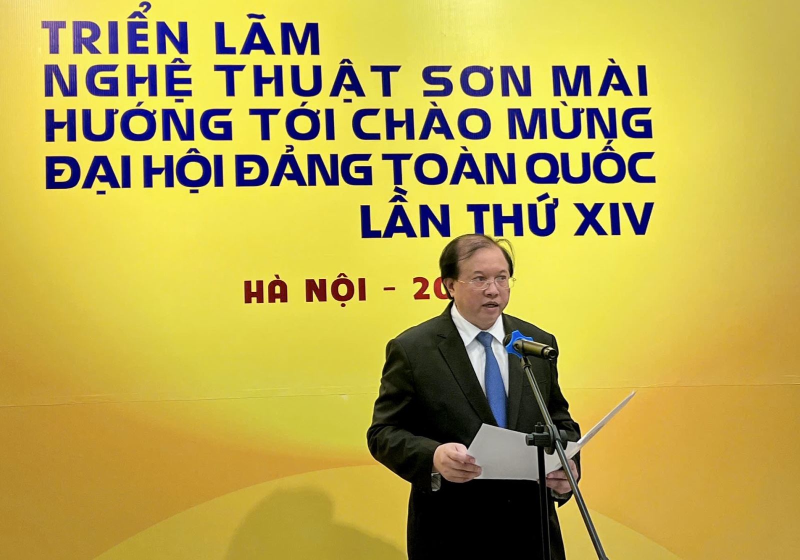 Chiều 12-12, tại Hà Nội, Cục Mỹ thuật, Nhiếp ảnh và Triển lãm phối hợp với các đơn vị liên quan tổ chức khai mạc trưng bày “Triển lãm nghệ thuật sơn mài hướng tới chào mừng Đại hội Đảng toàn quốc lần thứ XIV”.