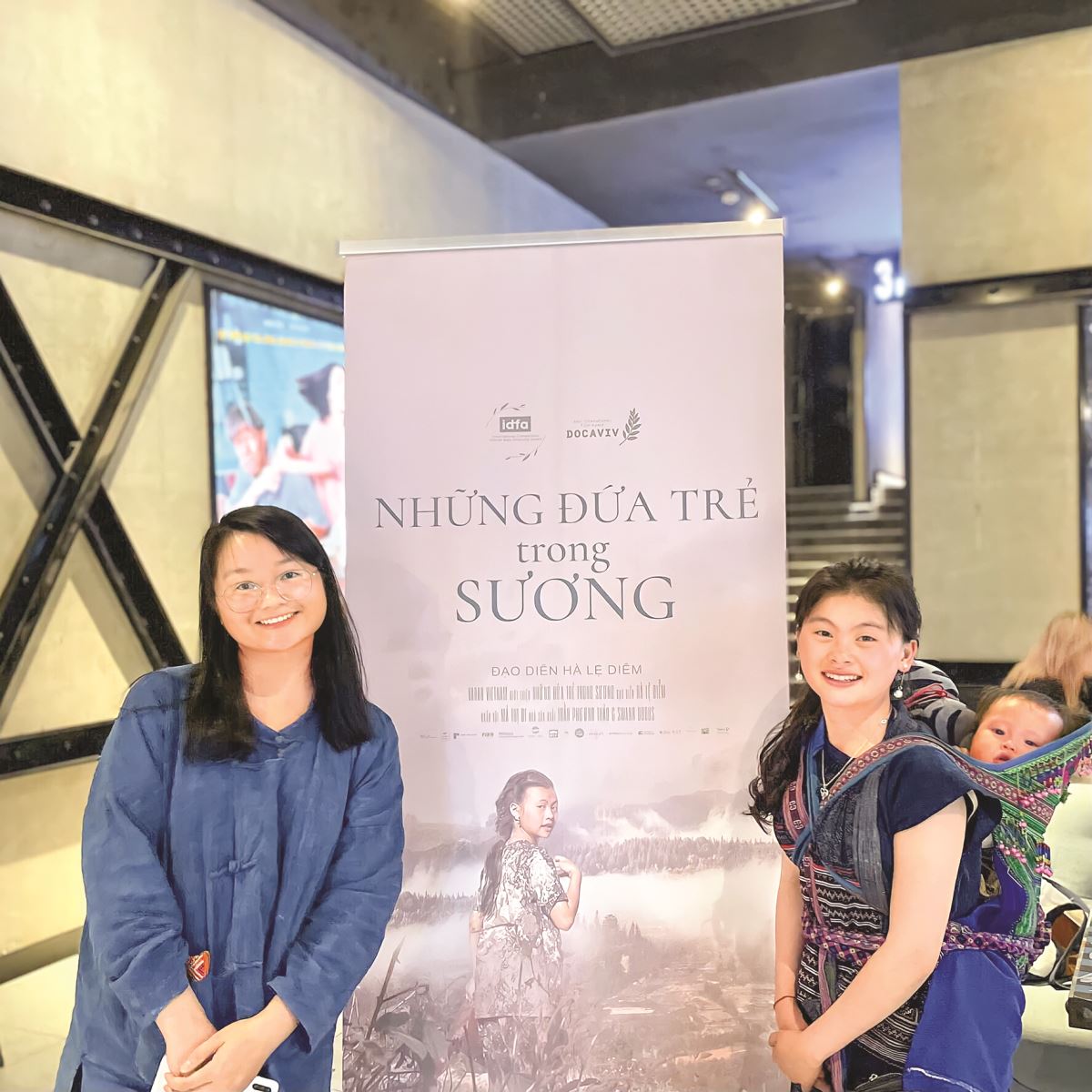 Đạo diễn Hà Lệ Diễm và Má Thị Di trong buổi ra mắt phim Những đứa trẻ trong sương tại Hà Nội