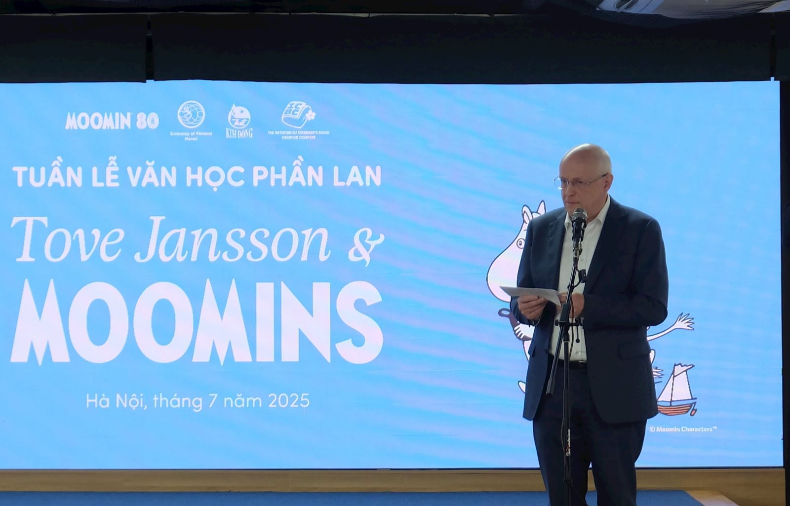 Chiều 11-7, tại Hà Nội đã diễn ra lễ khai mạc “Tuần lễ Văn học Phần Lan - Trưng bày Tove Jansson & Moomins 80”. Đây là sự kiện do Nxb Kim Đồng phối hợp cùng Đại sứ quán Phần Lan tại Việt Nam và tổ chức The Initiative of Children's Book Creative Content (ICBC) tổ chức. Tuần lễ diễn ra từ ngày 12 đến 20-7-2025 với nhiều hoạt động phong phú như trưng bày nghệ thuật, đọc sách sáng tạo, ra mắt sách, tương tác thủ công... Tất cả chương trình đều mở cửa miễn phí cho công chúng.