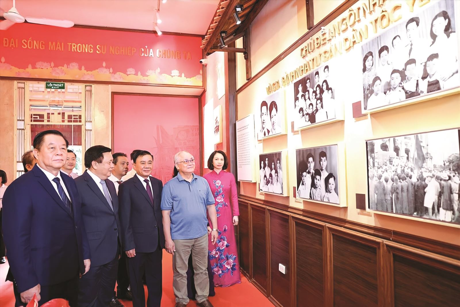 Đồng chí Trần Cẩm Tú, Ủy viên Bộ Chính trị, Thường trực Ban Bí thư cùng các đại biểu tham quan trưng bày tại di tích 48 Hàng Ngang (18/8/2025) - Ảnh: Thanh Tùng /TTXVN