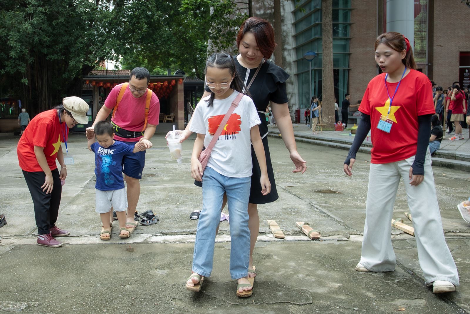 Các bạn nhỏ trải nghiệm trò chơi đi guốc đôi tại Bảo tàng